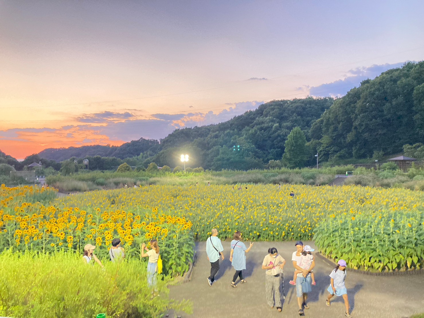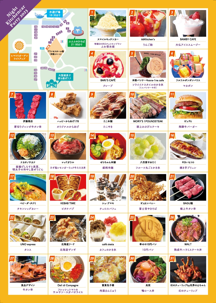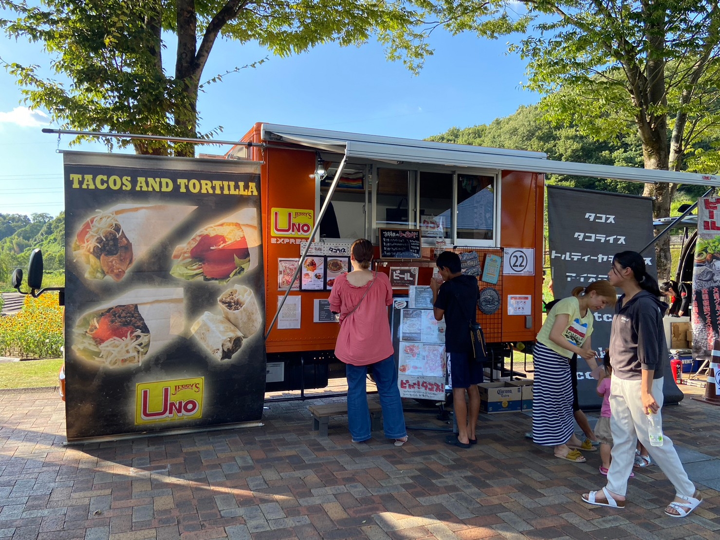 ずらり並んだキッチンカー、随時くり広げられる大道芸人によるパフォーマンス、大型遊具やひまわりのライトアップなど盛りだくさんの内容でお届け。皆様の夏の思い出づくりのお役に立てたことと思います。