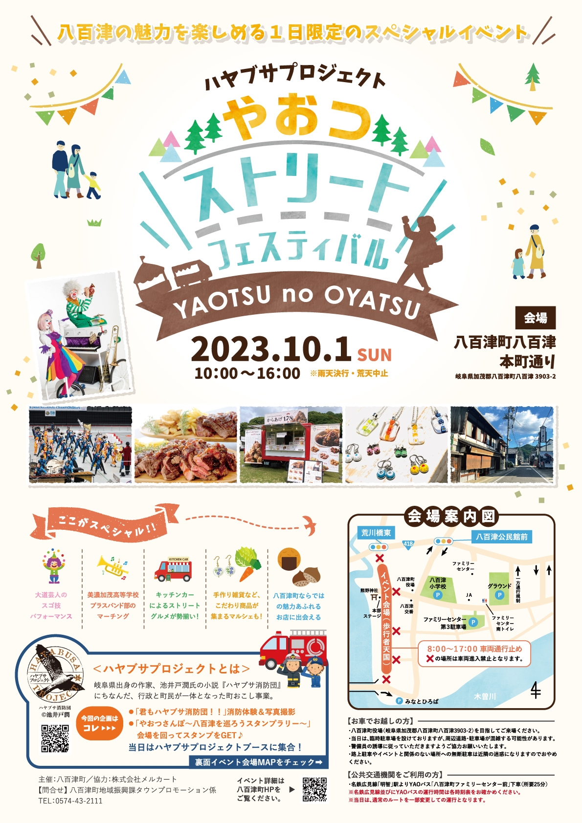 10.1(日)ハヤブサプロジェクト やおつストリートフェスティバル2023~YAOTSU no OYATSU~@岐阜県加茂郡八百津町 八百津本町通り