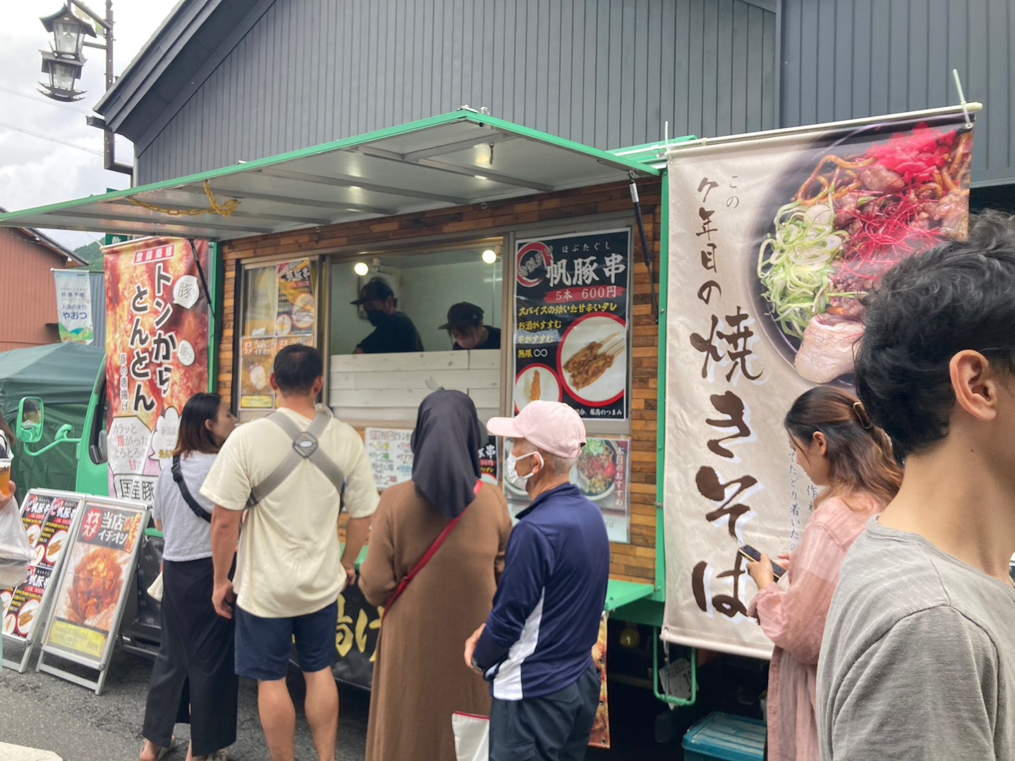八百津本町通りにずらりと並ぶキッチンカー、マルシェは、どこも行列ができる盛況ぶりでした。八百津町ならではの「美味しい」を楽しめるお店も多数あり、地元の方はもちろん県外から訪れた方にも大満足いただけたのではないでしょうか。