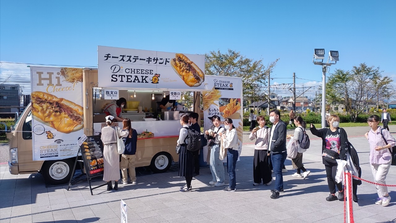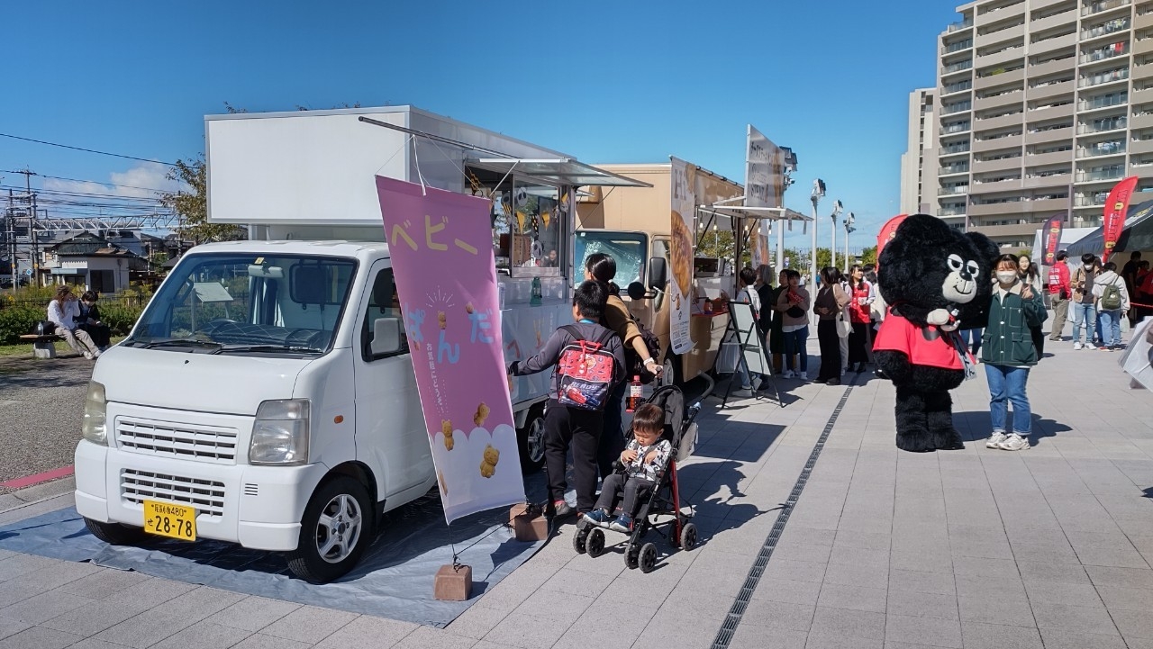 こちらに、東海移動販売車組合からキッチンカーを派遣。試合観戦に訪れた皆さまに自慢のキッチンカーグルメを提供しました。キッチンカー出店場所には、チームマスコットである「ウルドくん」も登場し、笑顔が広がりました。