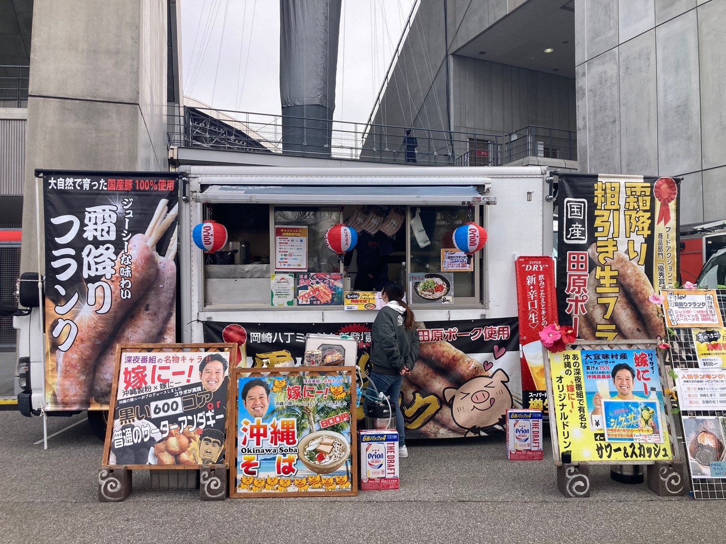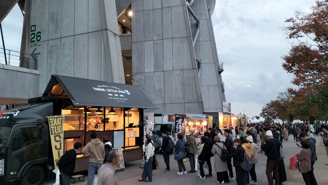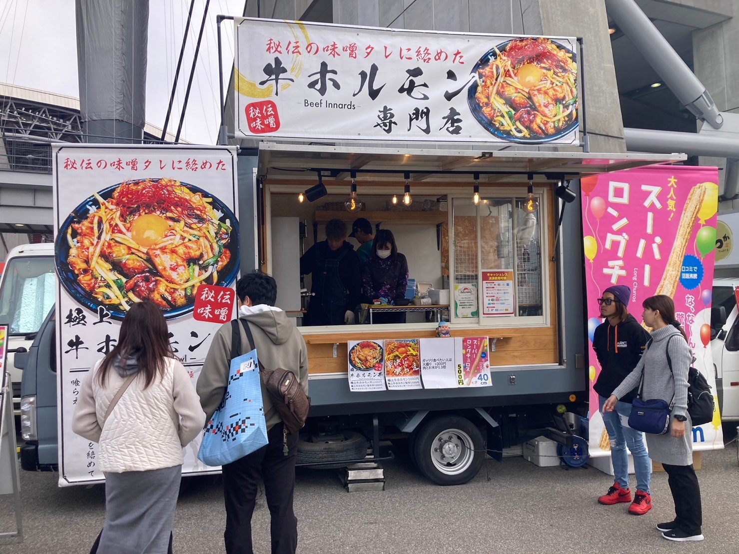 東海移動販売車組合は、豊田スタジアムにてフードコートを運営。来場された皆さまに自慢のキッチンカーグルメを提供しました。豊田スタジアムといえば、名古屋グランパスエイトのホームスタジアム。サッカーの試合とはまたひと味違う「熱気」に、各キッチンカーも大いに盛り上がりました!