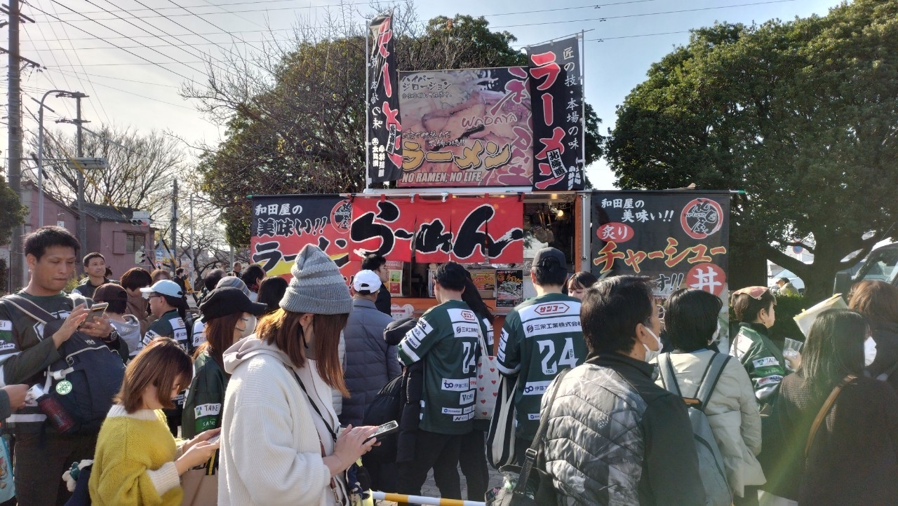 いよいよ始まったNTT JAPAN RUGBY LEAGUE ONE2023-24シーズン。開幕戦は、12月9日(土)ブラックラムズ東京戦@パロマ瑞穂ラグビー場。スタジアムグルメは、「ラーメン祭り」! あったかラーメンのほか、ヴェルブリッツバーで販売されるオリジナルドリンク、からあげ、タコスなど、実力派キッチンカーが自慢のグルメを提供しました。