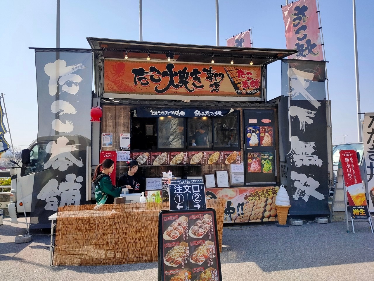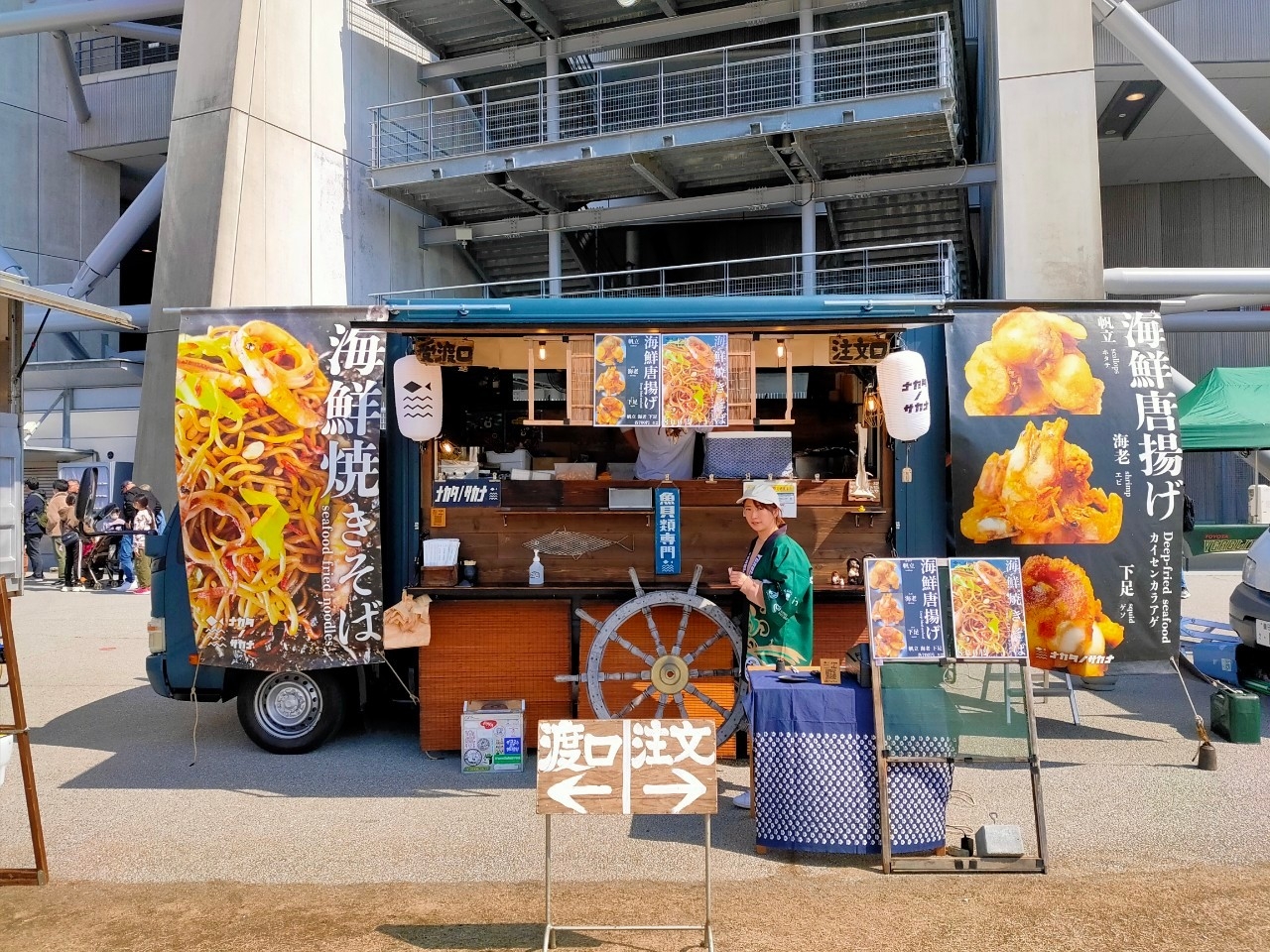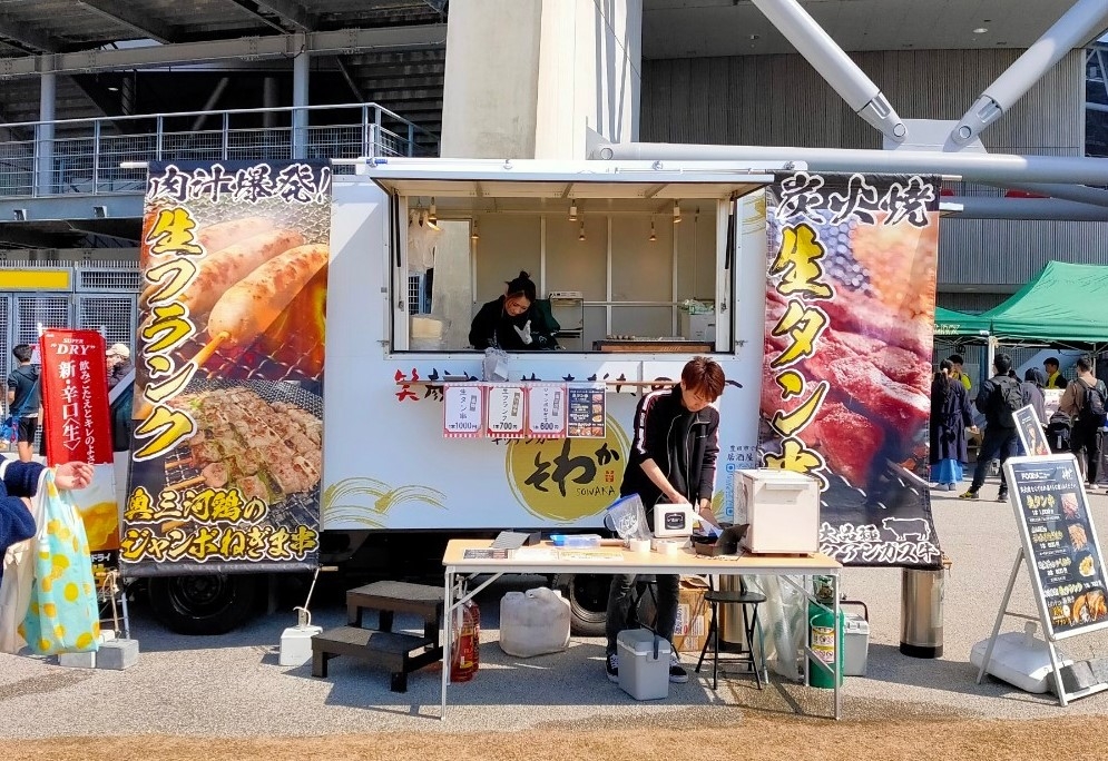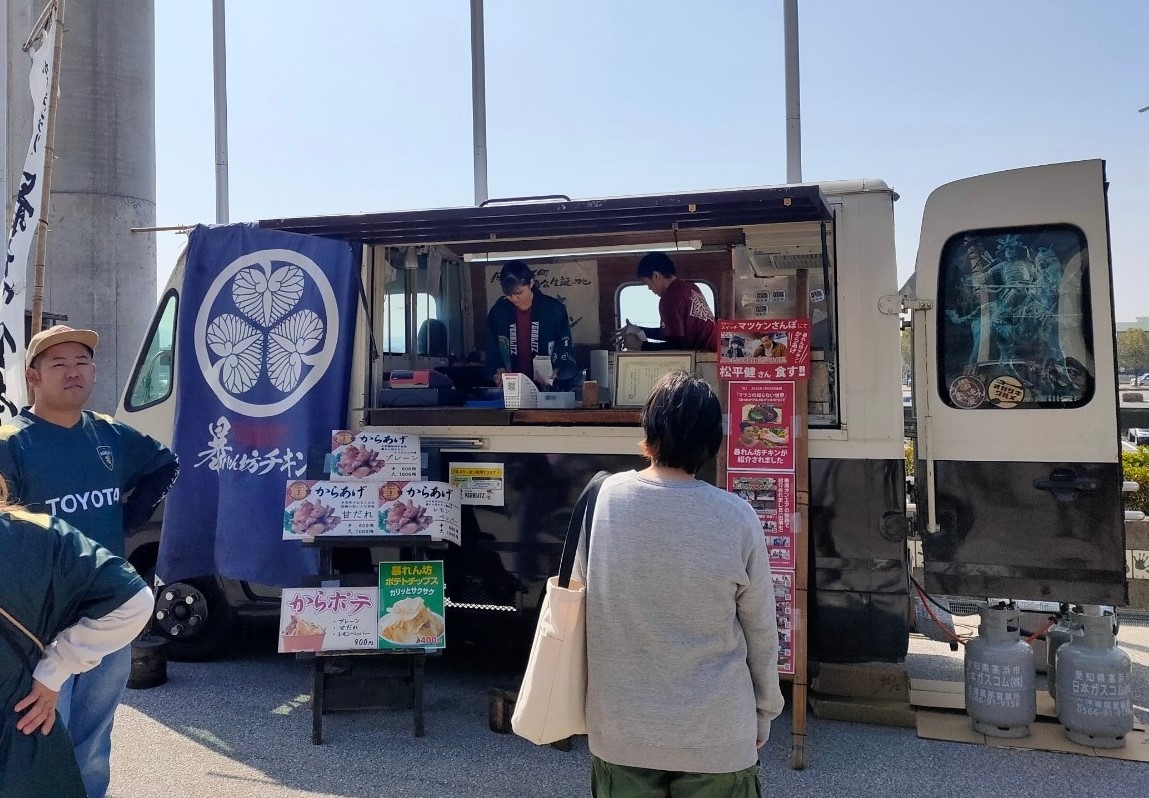 東海移動販売車組合のキッチンカーのなかでも人気の高い「からあげ店」が多数出店。レギュラー店舗とともに、スタジアムに来場したファンの皆さまに自慢のメニューを提供しました。