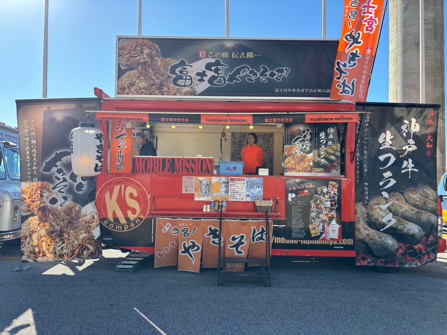 最大60台のラリーカーがスペシャルステージでタイムを競います。ラリージャパンの特設コースでのステージも観覧可能だったこちらのイベントに、東海移動販売車組合からキッチンカーを派遣。