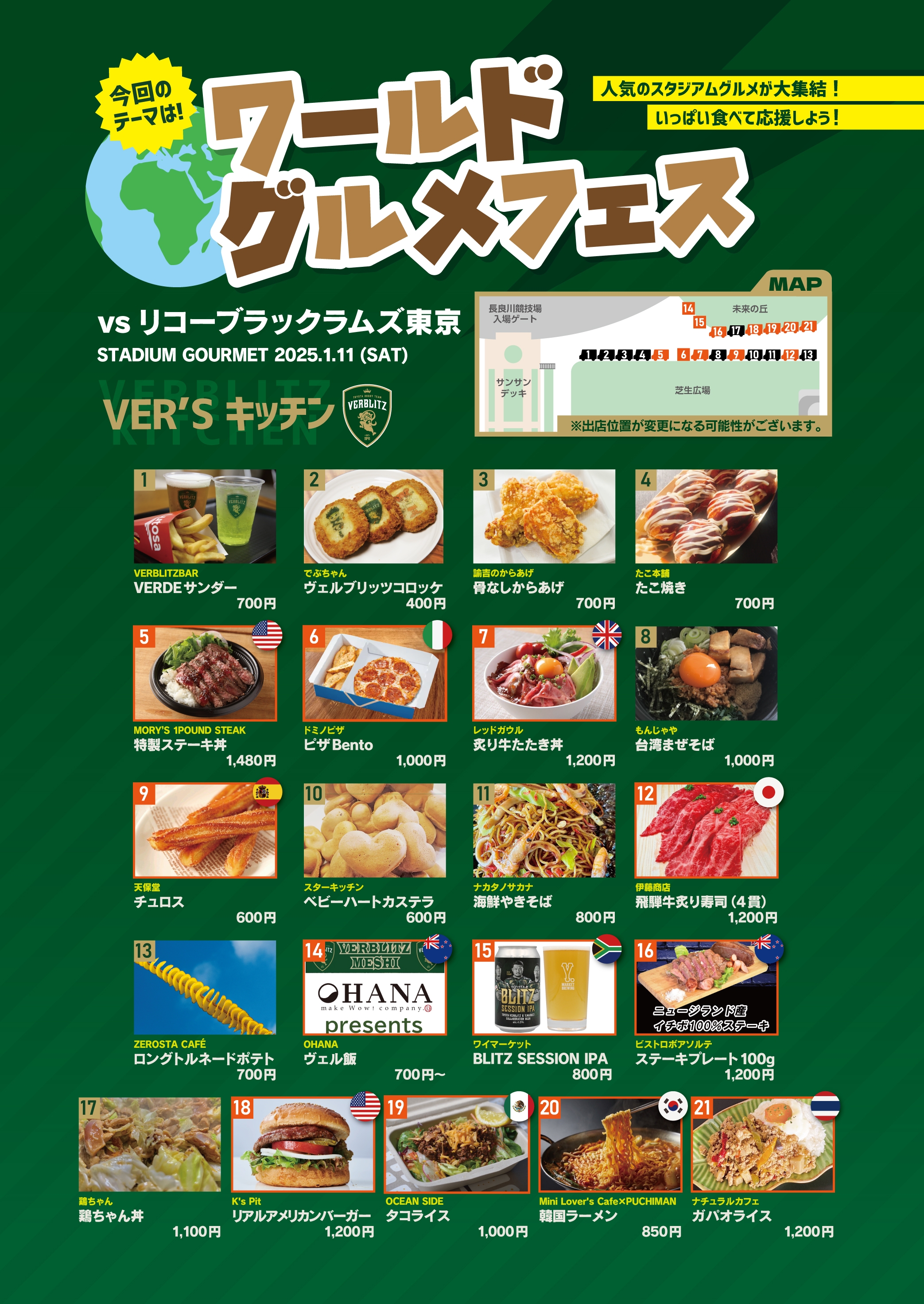 イベント情報 1.11(土)トヨタヴェルブリッツvsリコーブラックラムズ東京@岐阜メモリアルセンター長良川競技場(岐阜県岐阜市) スタジアムグルメ「VER’Sキッチン」