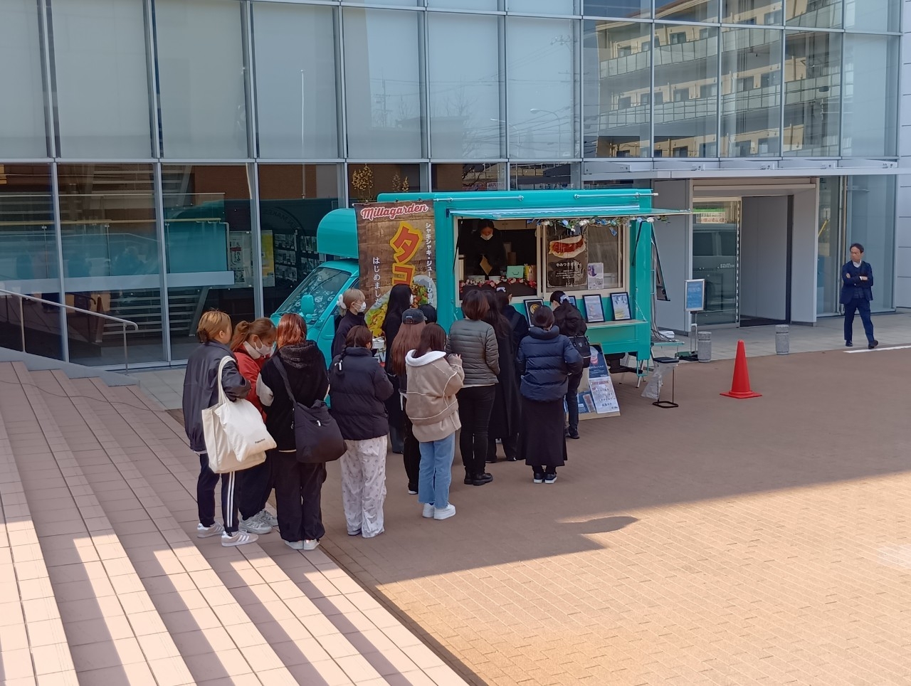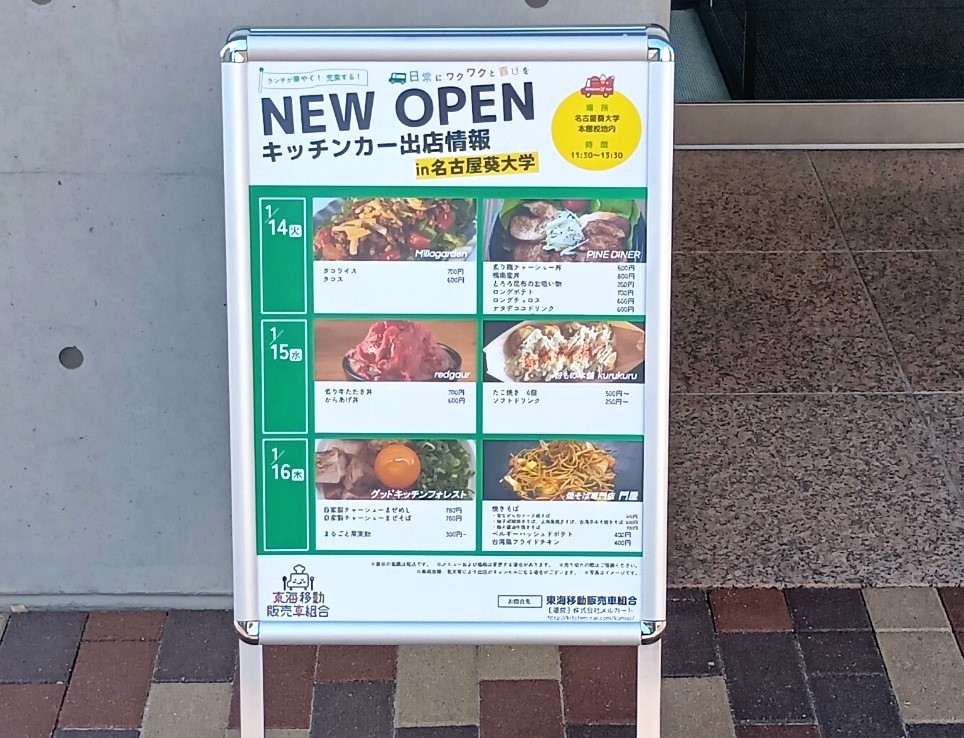 今回は名古屋女子大学のキッチンカー出店風景をご紹介。まずは1月14日(火)~16日(木)の三日間トライアル出店、4月以降は定期的に東海移動販売車組合のキッチンカーが出店予定ですので、学生の皆さま、職員の皆さま、どうぞお楽しみに!