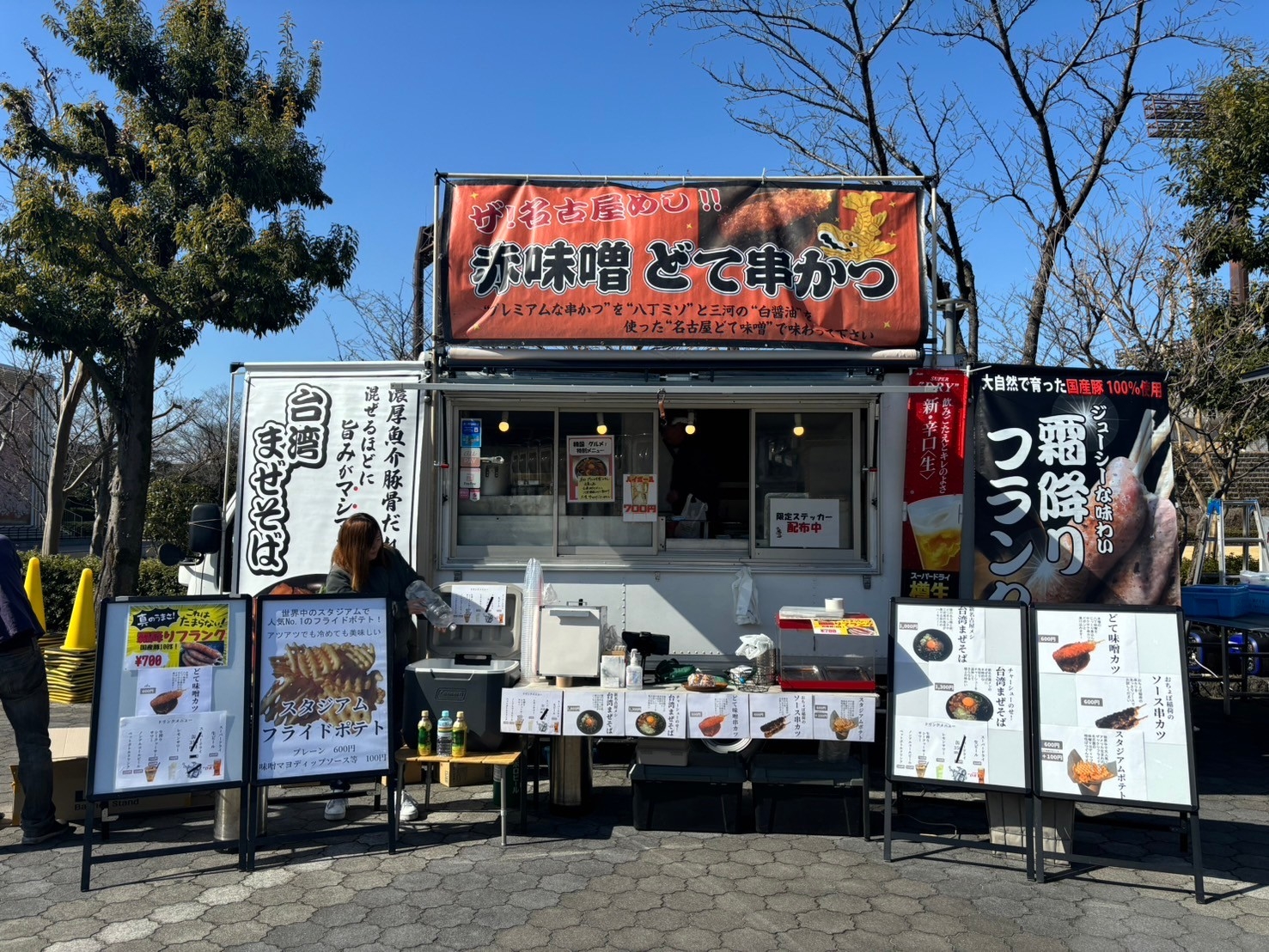 トヨタヴェルブリッツスタジアムグルメ「VER’Sキッチン」のテーマも、ガールズデーにちなんで「韓国&スイーツ」。東海移動販売車組合のキッチンカーのなかから、プルコギ丼やヤンニョムチキンなどの韓国グルメ、果実飴、クレープ、ベビーカステラなどのスイーツが揃い、会場に彩りを添えました。