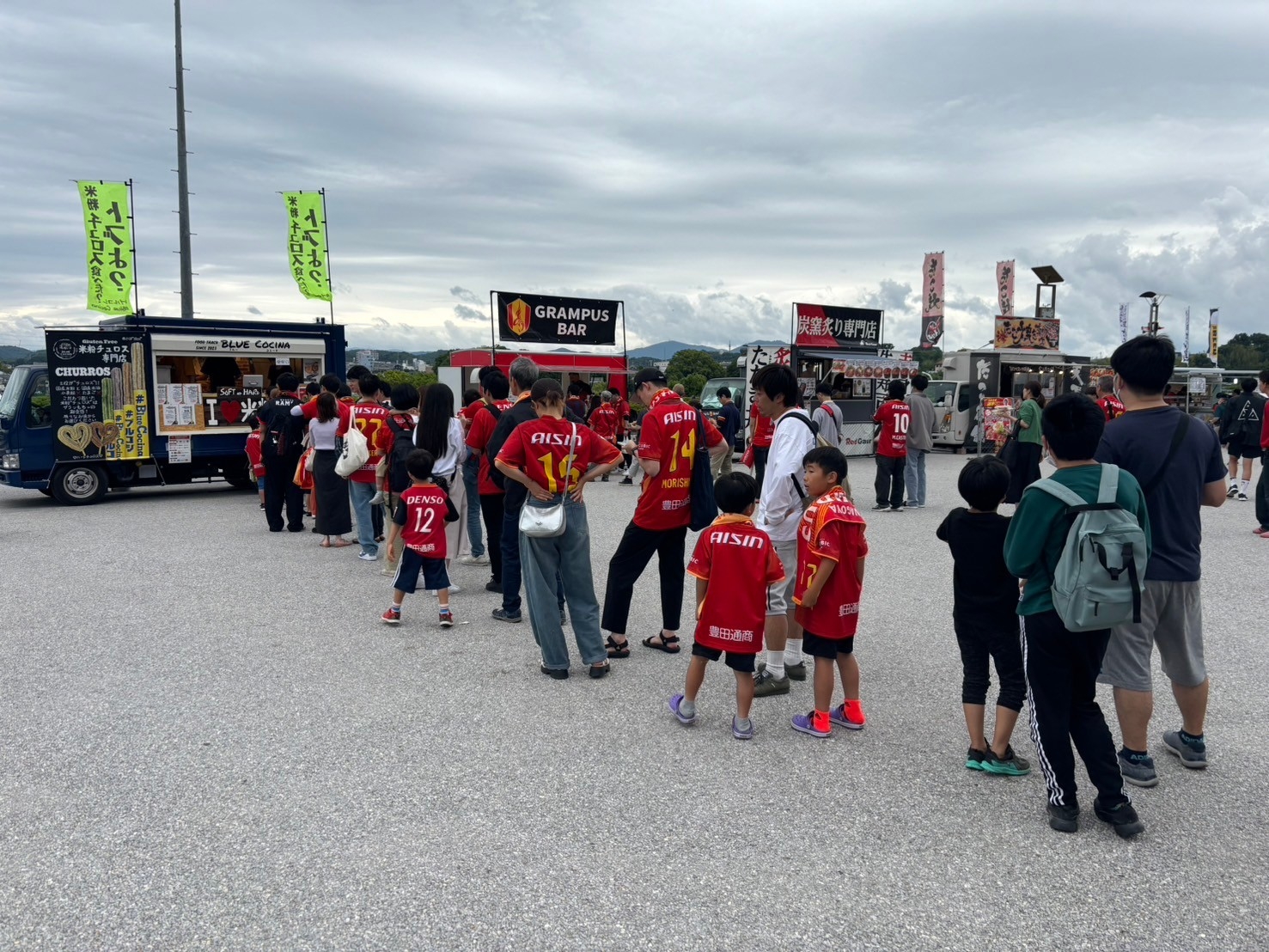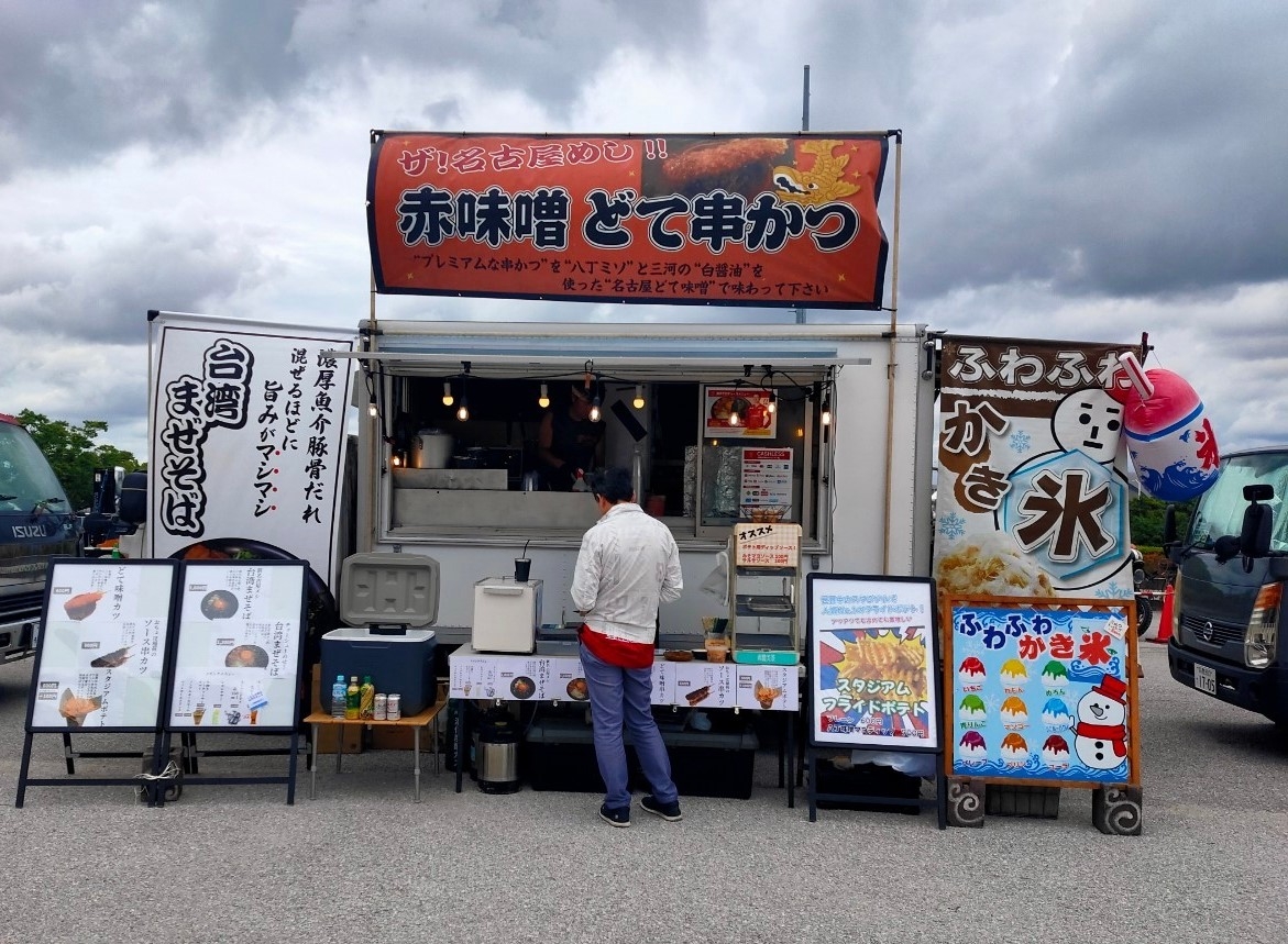6月9日(日)に開催されたJリーグYBCルヴァンカップ プレーオフラウンド第2戦:名古屋グランパス vs 柏レイソル。東海移動販売車組合のキッチンカーによるスタジアムグルメは、定番人気メニューが集結。