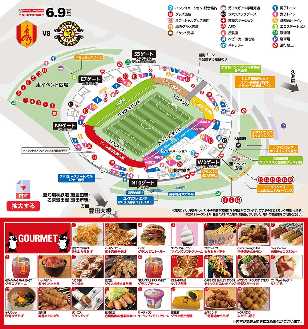イベント情報 6.9(日)JリーグYBCルヴァンカップ プレーオフラウンド第2戦:名古屋グランパス vs 柏レイソル@豊田スタジアム(愛知県豊田市) スタジアムグルメ