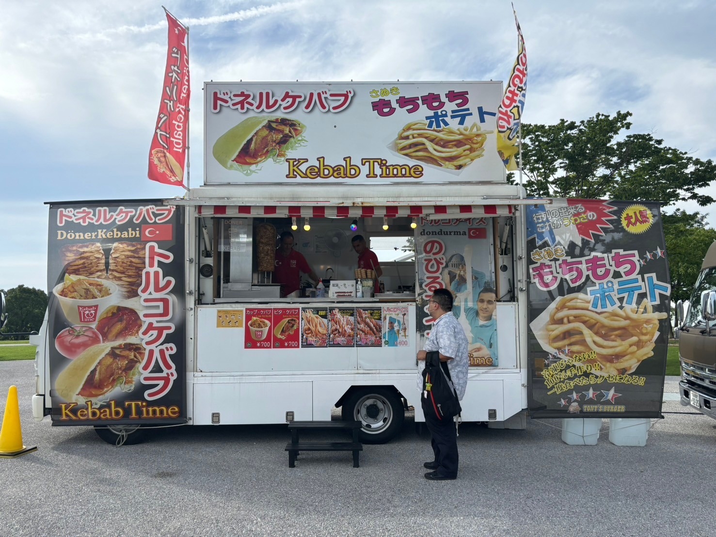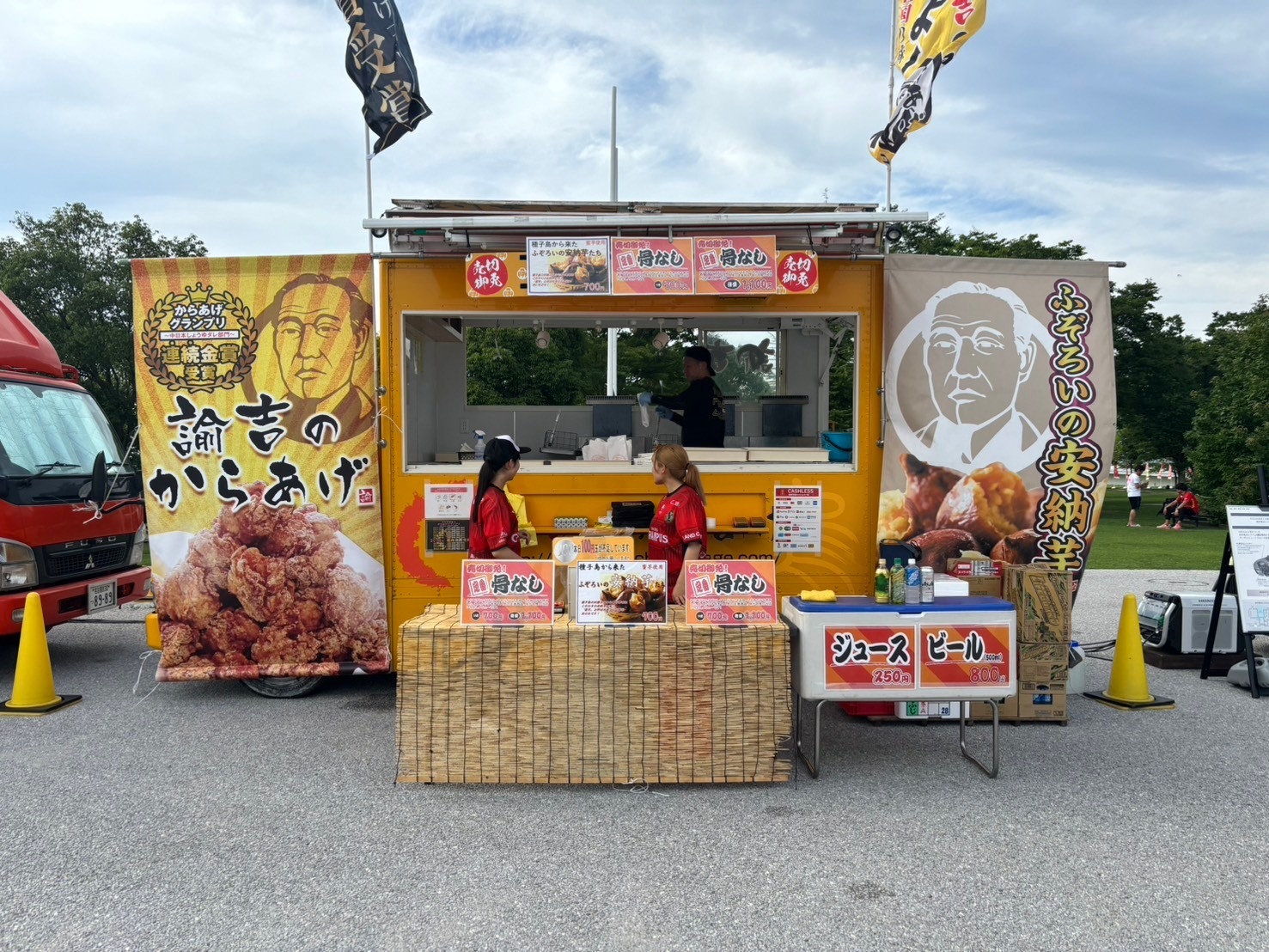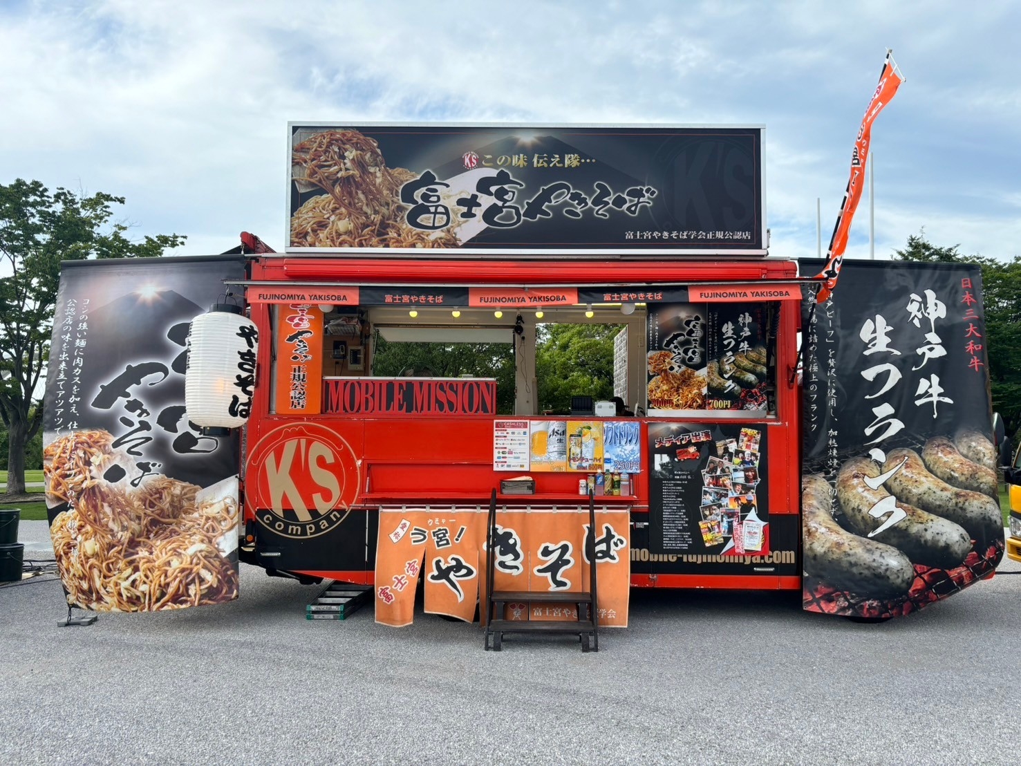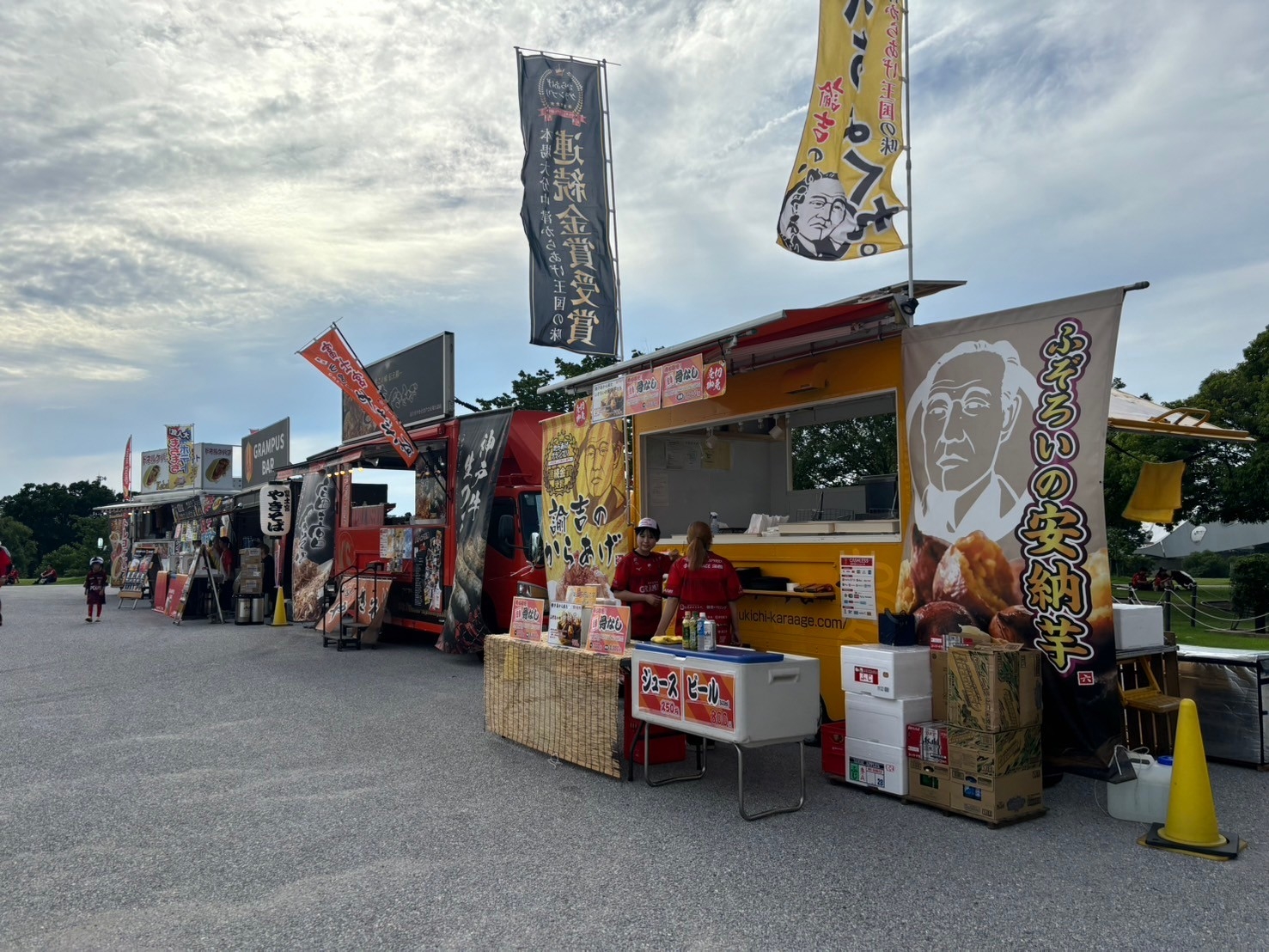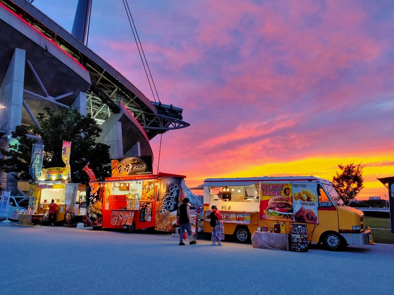 スタジアムにずらりと並んだ東海移動販売車組合のキッチンカー28台も、すべてこれらの給電車から電気供給を受け営業。従来使用している発電機から生じる駆動音や排気ガスがなく、とてもクリーンなイベント会場となった印象です!