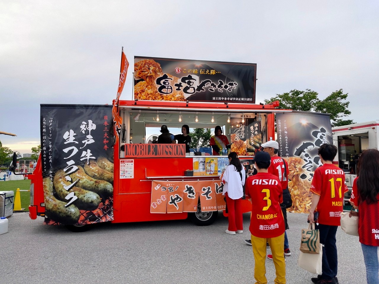 東海移動販売車組合は、今シーズンも引き続きスタジアムグルメを通して名古屋グランパスとサポーターの皆さまを応援します。