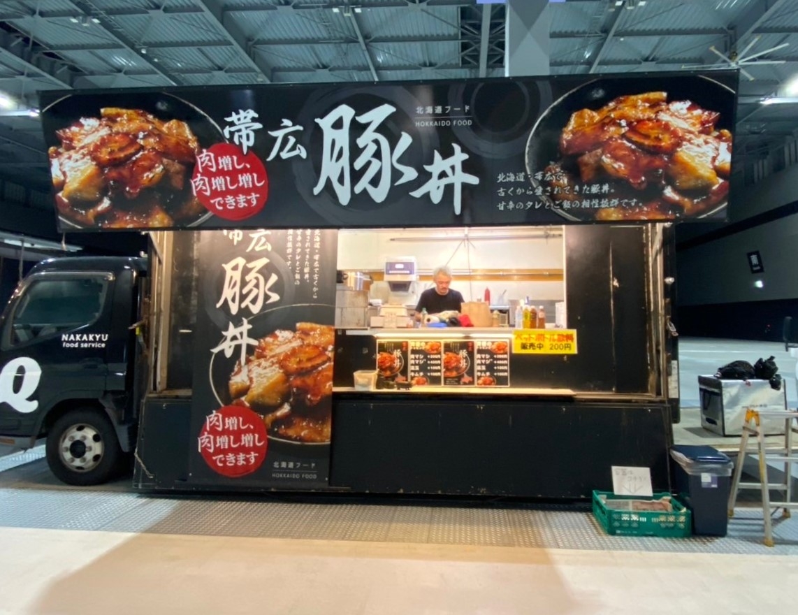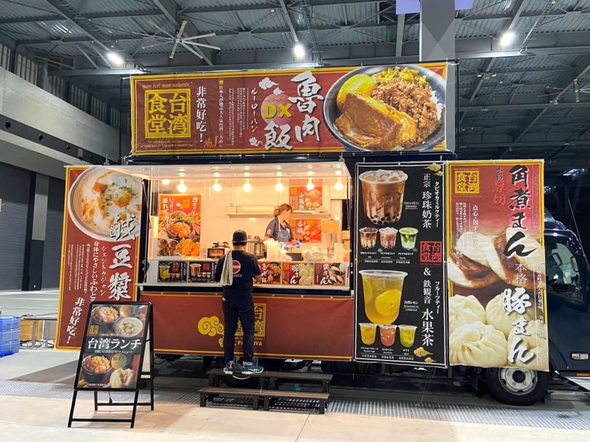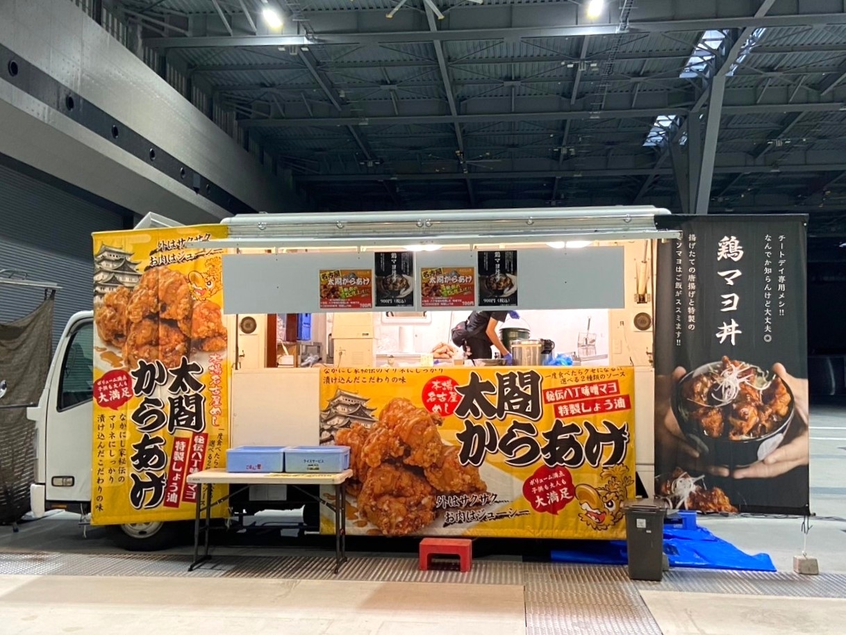 こちらに、東海移動販売車組合よりキッチンカーを派遣しています。主催者さま、キッチンカー出店者の皆さま、3日間どうぞよろしくお願いいたします。来場される皆さま、ぜひ東海移動販売車組合自慢のキッチンカーグルメをお楽しみください。