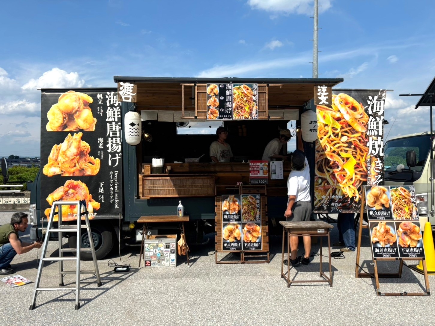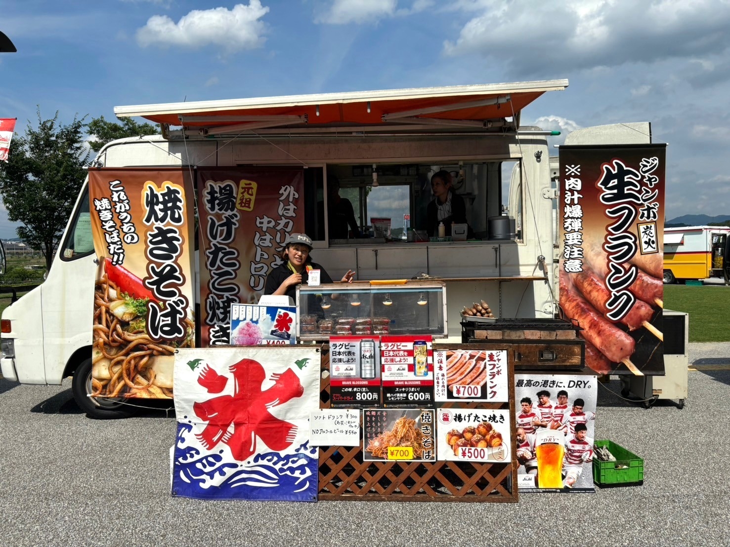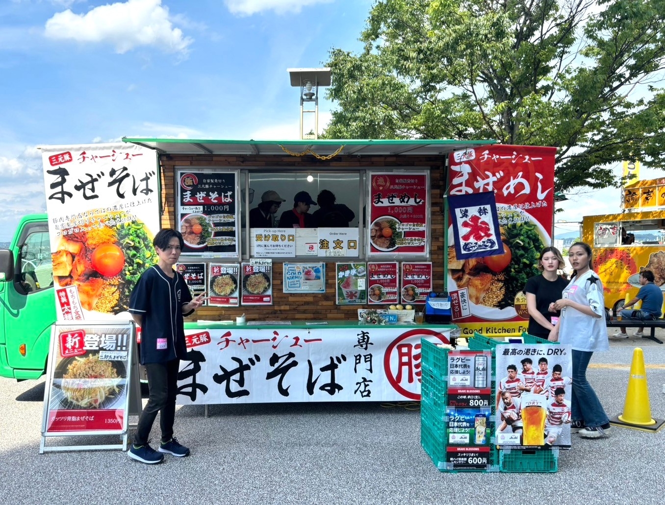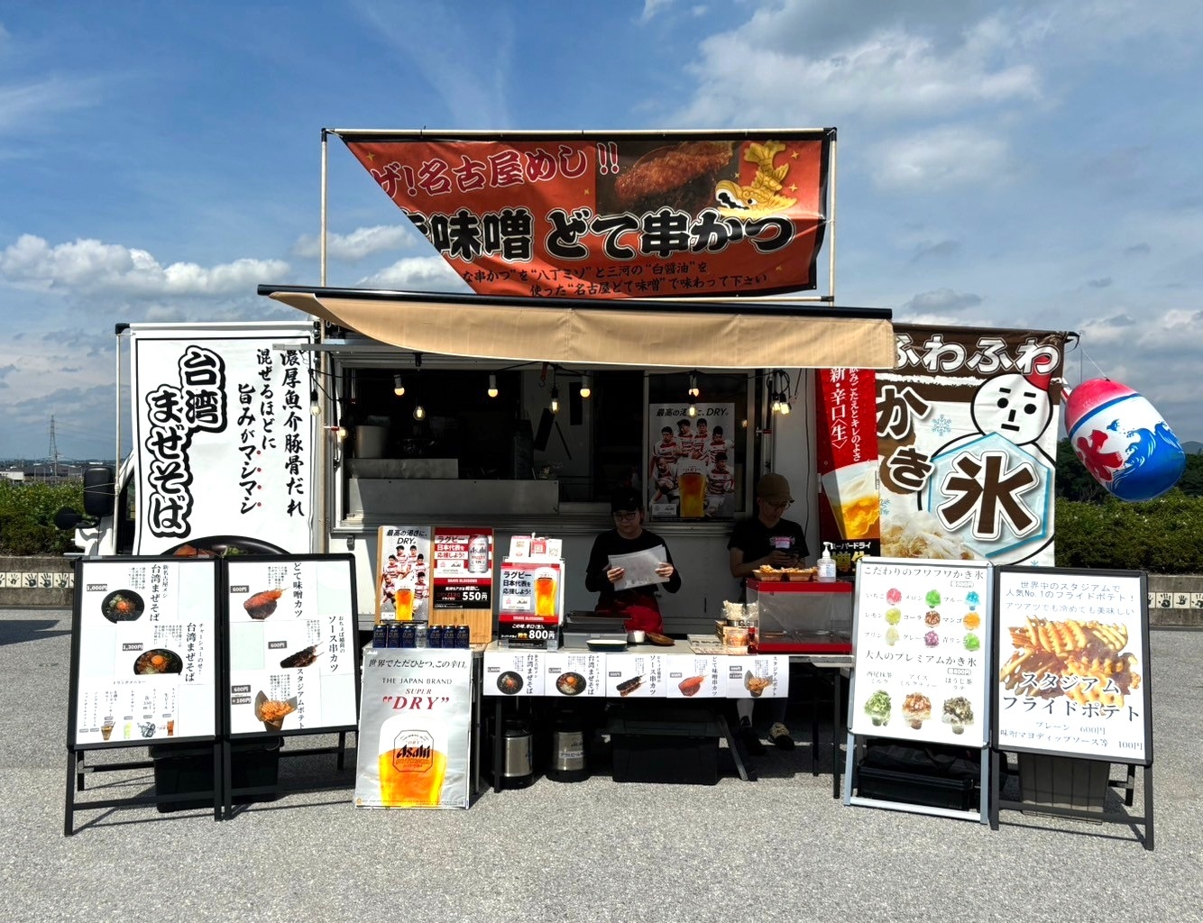 こちらに、東海移動販売車組合のキッチンカーを派遣。実力派キッチンカーがすらり並んで、美味スタジアムグルメを提供しました。
