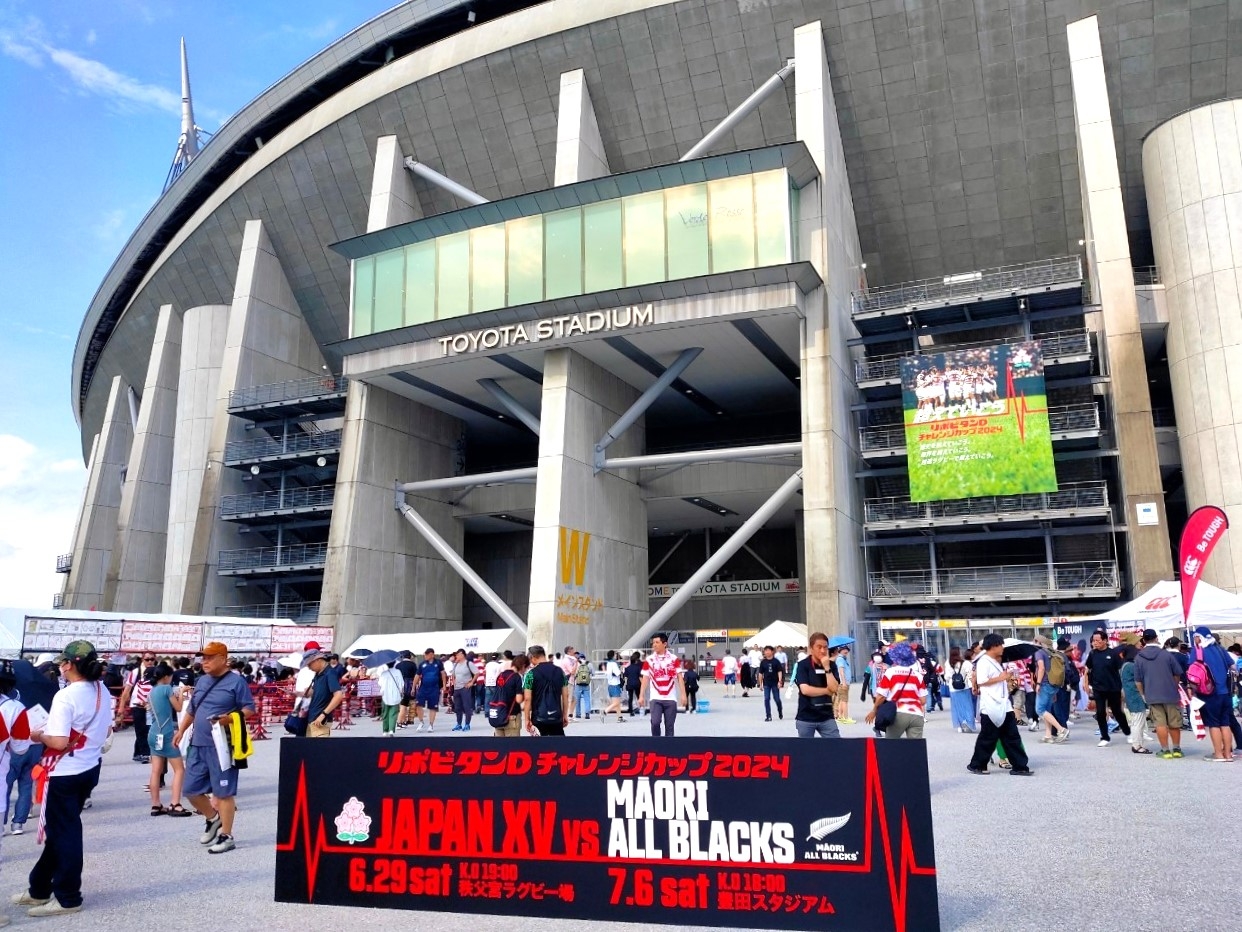 7月6日(土)に豊田スタジアムで開催された、リポビタンD チャレンジカップ2024 JAPAN XV(フィフティーン) vs マオリ・オールブラックス。豊田スタジアムには、多くのラグビーファンが集まりました。