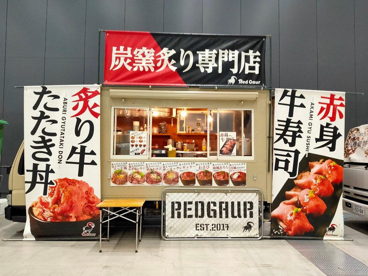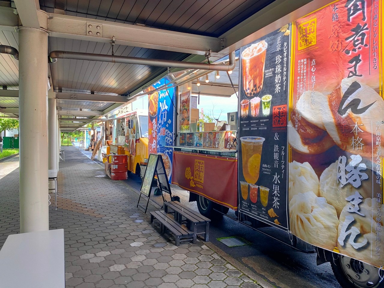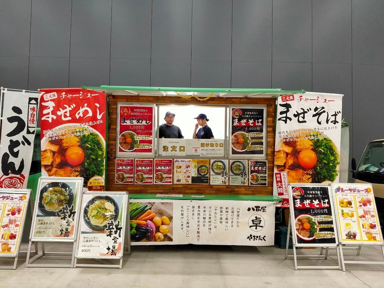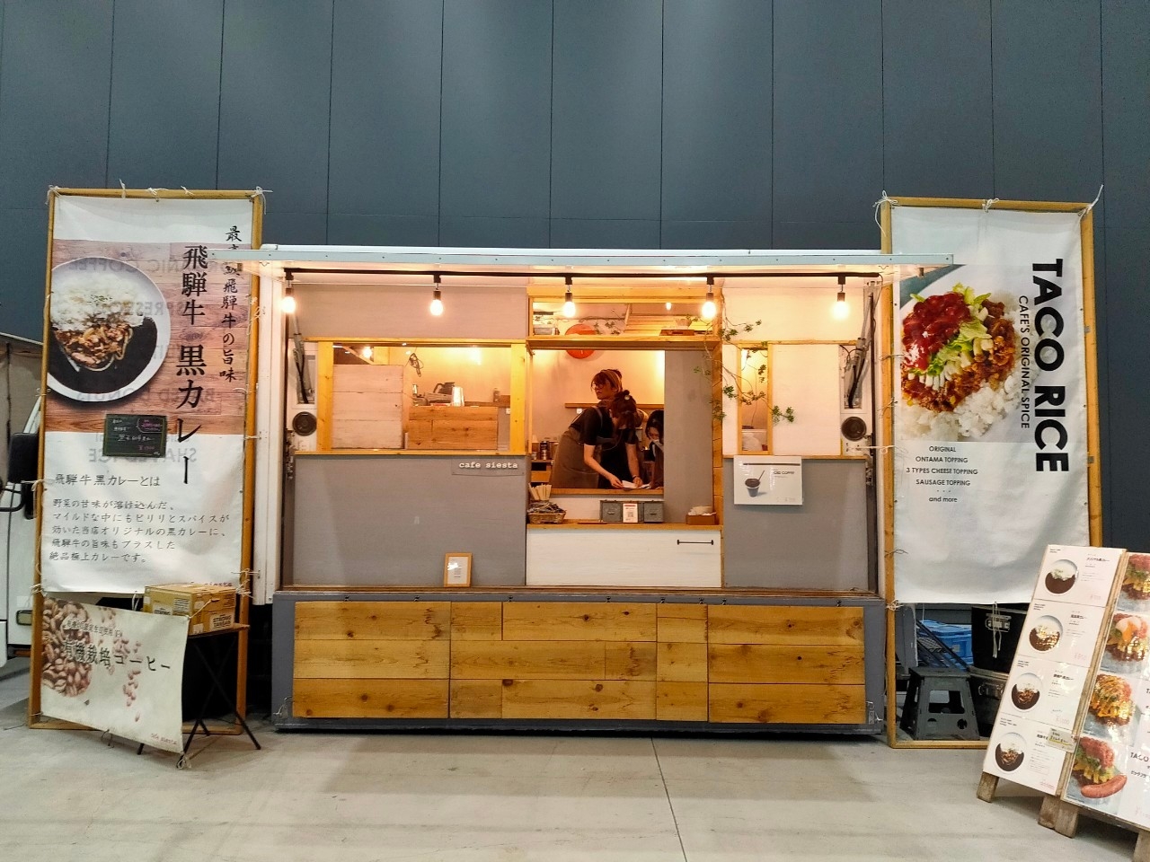 こちらに、東海移動販売車組合よりキッチンカーを派遣しています。主催者さま、キッチンカー出店者の皆さま、3日間どうぞよろしくお願いいたします。来場される皆さま、ぜひ東海移動販売車組合自慢のキッチンカーグルメをお楽しみください。