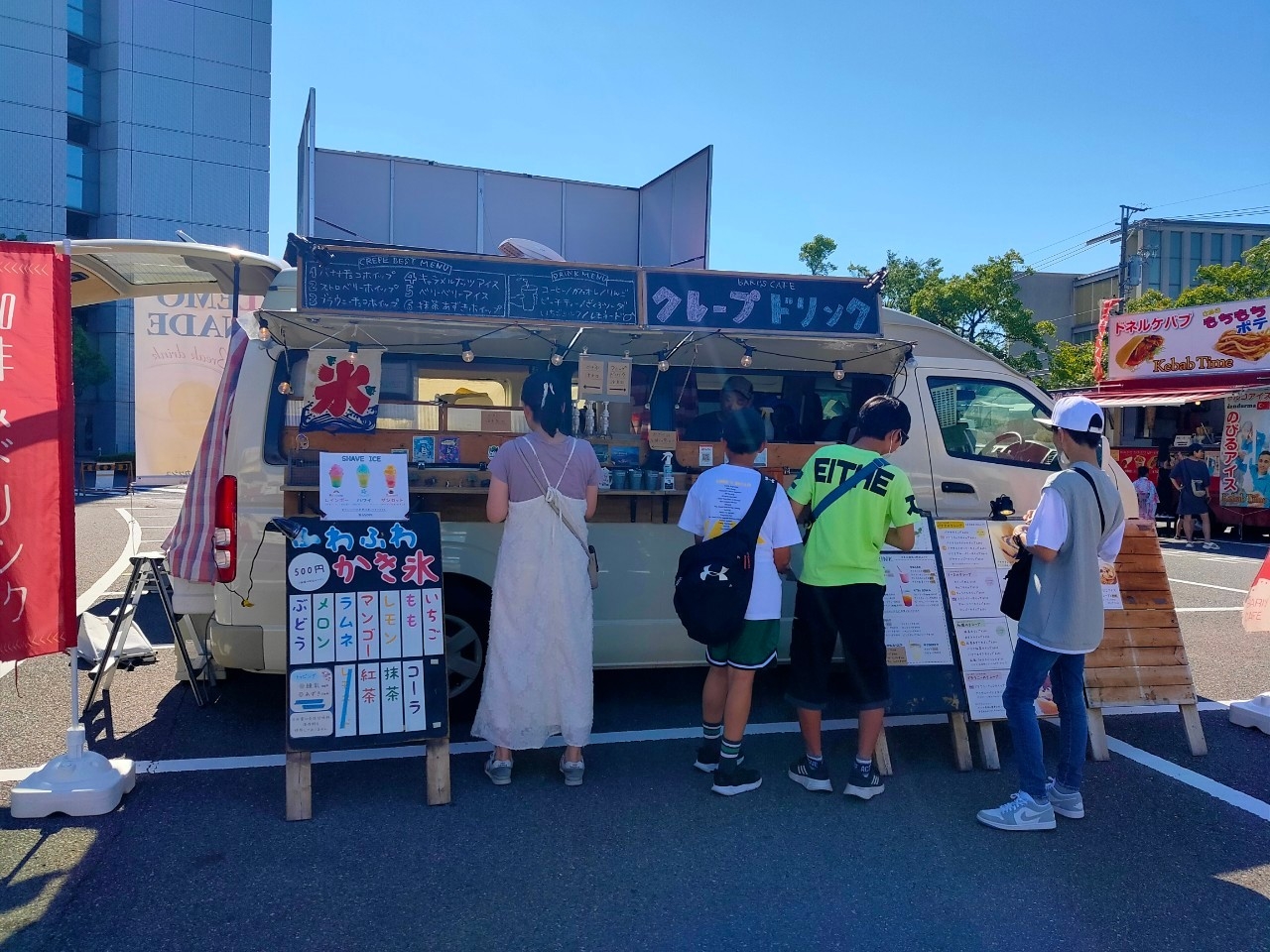 昨年の開催に引き続き、東海移動販売車組合のキッチンカーをご利用いただいたふれあいサマーフェスティバル2024。8月1日(木)2日(金)の平日2日間開催ということで、一部店舗はランチタイムとなる11時から営業をスタート。15時からはすべてのキッチンカーが販売を始め、20時半のイベント終了まで来場された皆さまに美味しいキッチンカーグルメを提供しています。