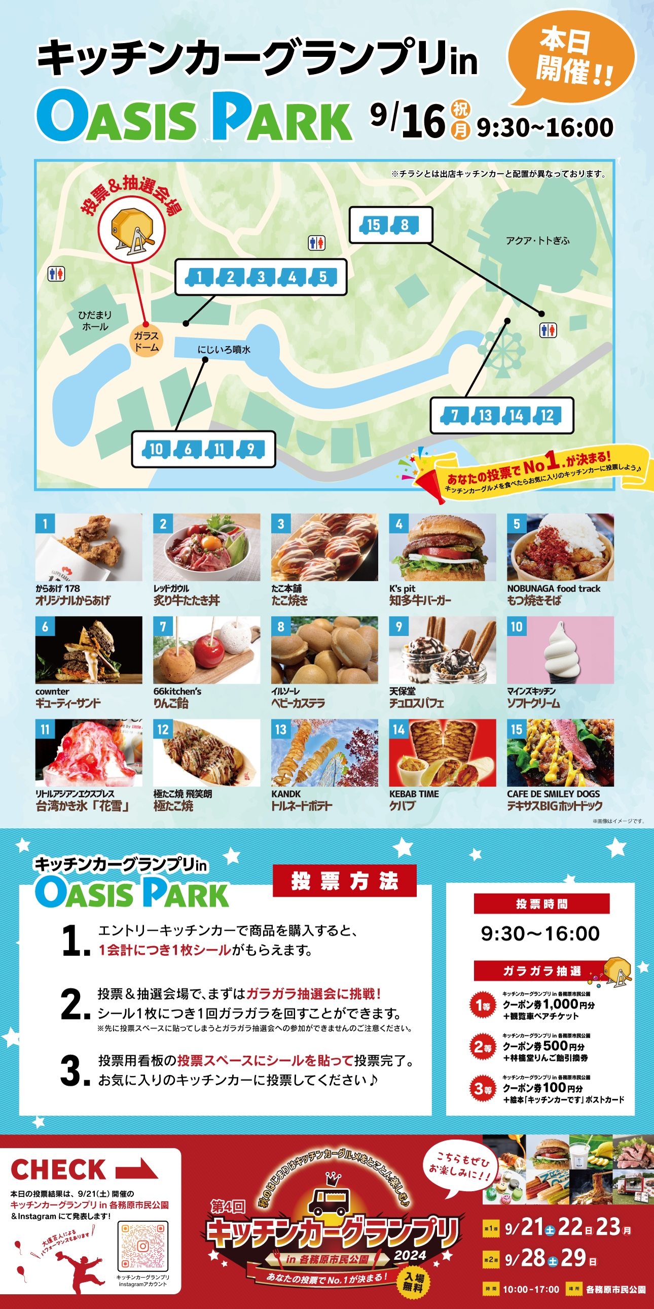 こちらの投票結果は、第4回キッチンカーグランプリin各務原市民公園で発表します。