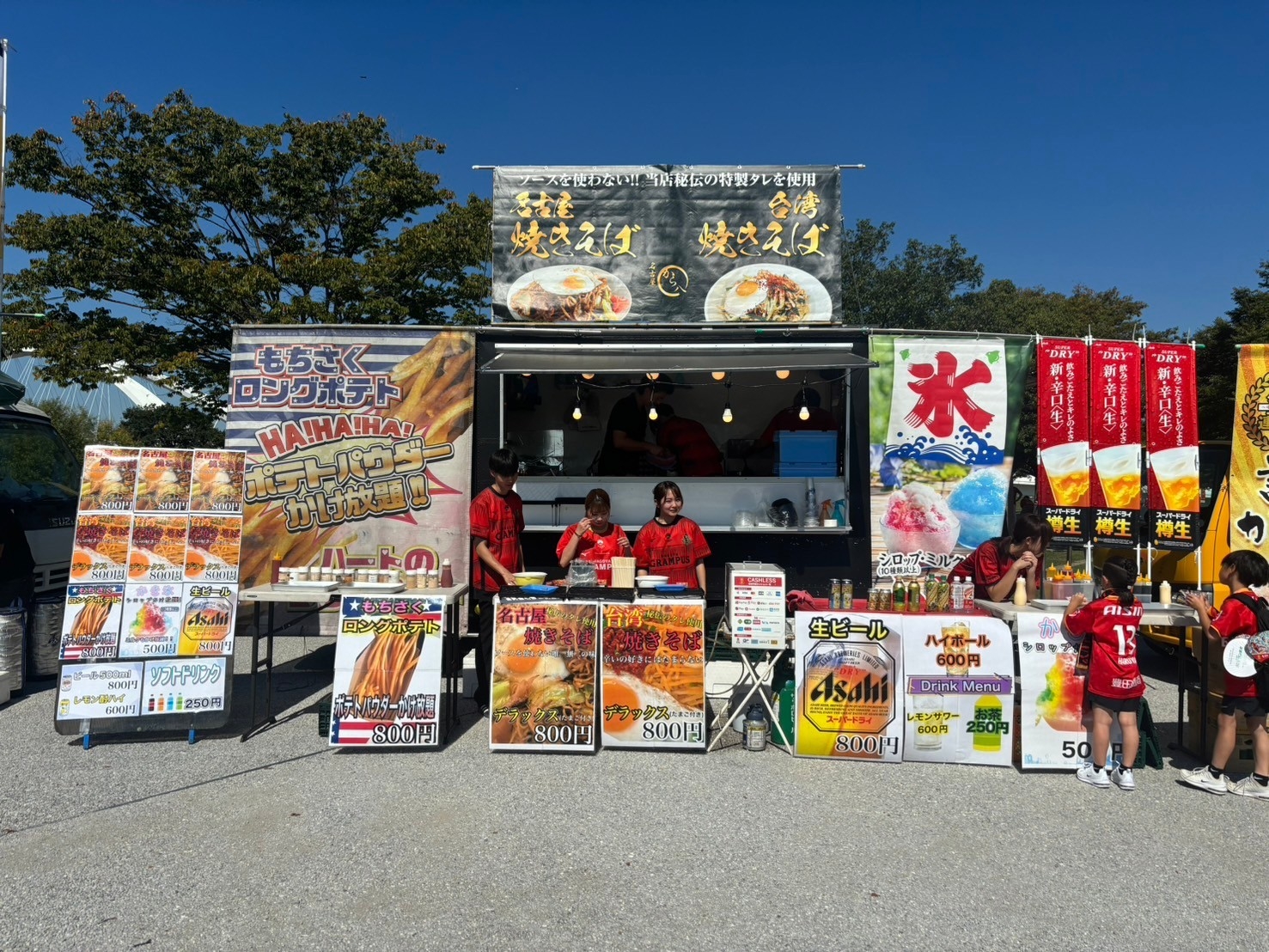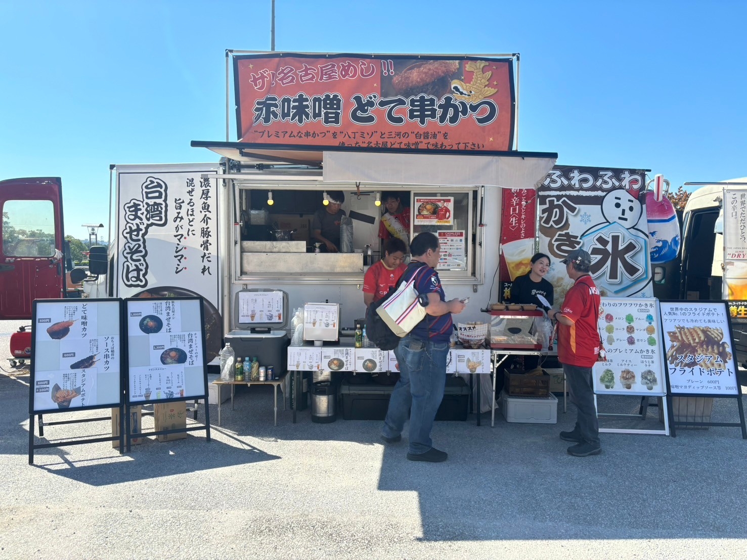 東海移動販売車組合のキッチンカーによるスタジアムグルメは、レギュラーメニューが勢揃い。ご来場いただいた皆さま、スタジアムグルメをご利用いただいた皆さま、ありがとうございました 。
