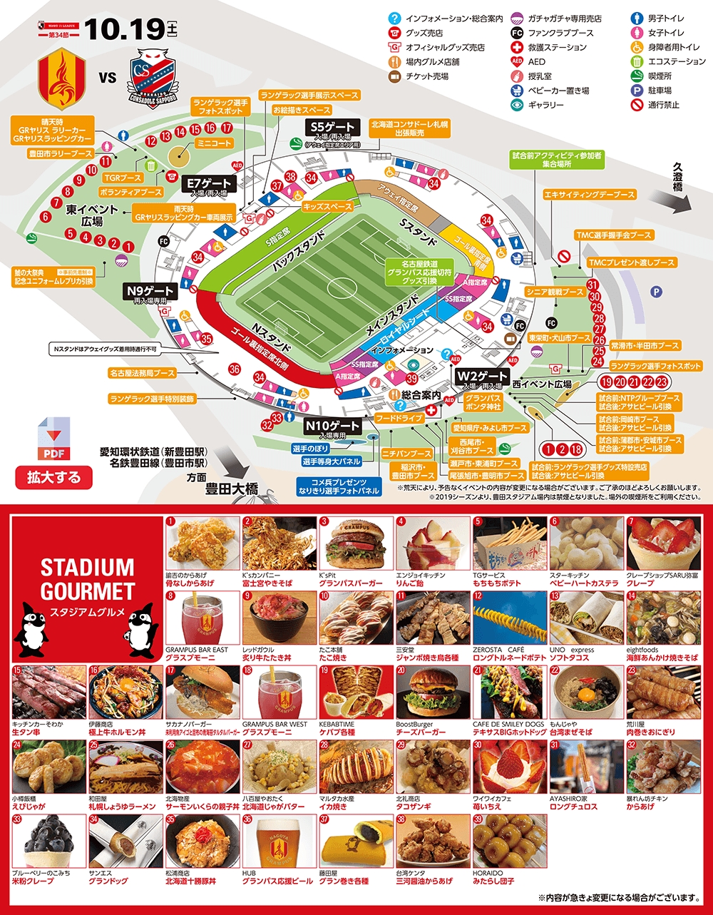 イベント情報 10.19(土)明治安田J1リーグ 第34節:名古屋グランパス vs 北海道コンサドーレ札幌@豊田スタジアム(愛知県豊田市) スタジアムグルメ