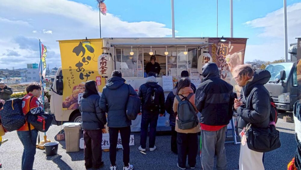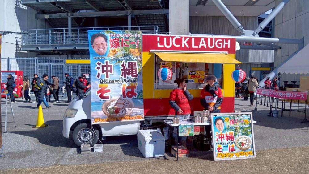 東海移動販売車組合のキッチンカーによるスタジアムグルメ、今回のテーマは『あったか麺祭り』!