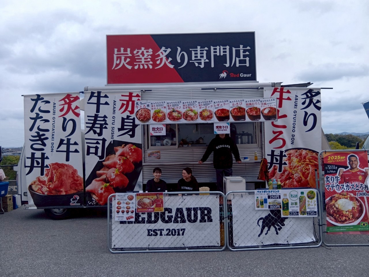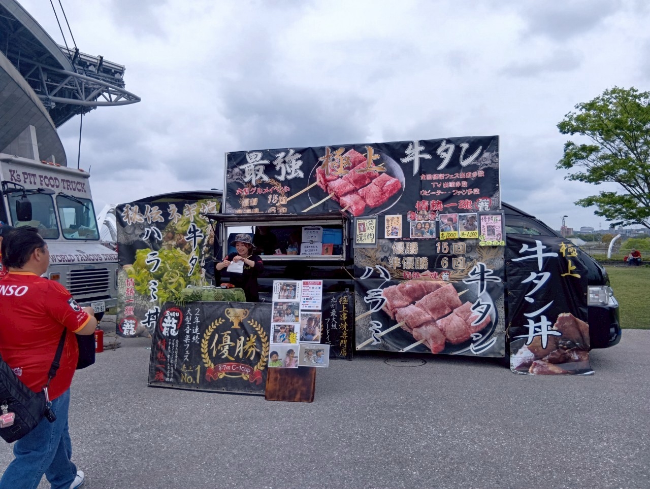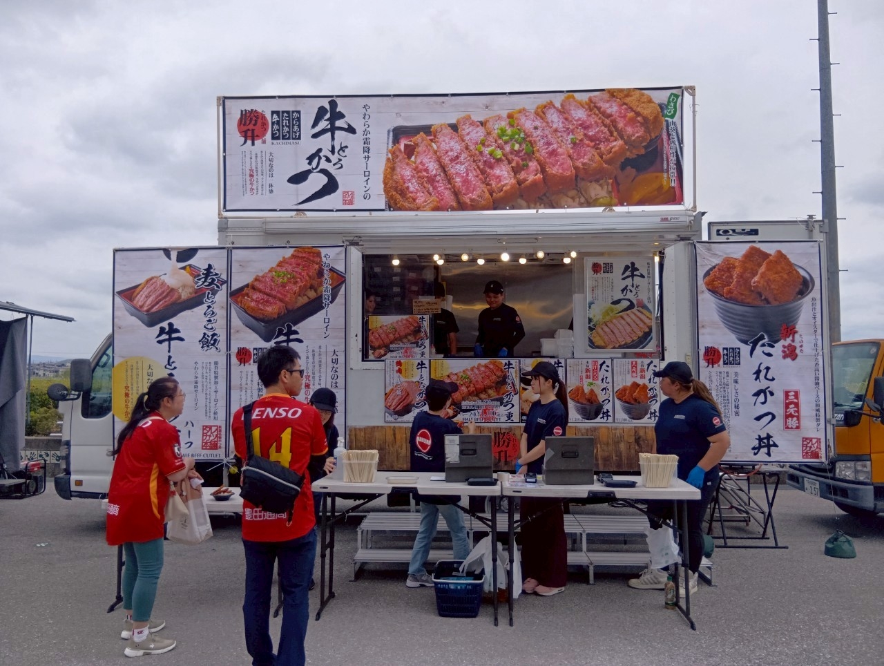 東海移動販売車組合のキッチンカーによるこの日のスタジアムグルメは「丼祭り」!牛タン丼、しらす丼、からあげ丼、ステーキ丼など、味自慢、ボリューム自慢の丼メニューが揃いました。