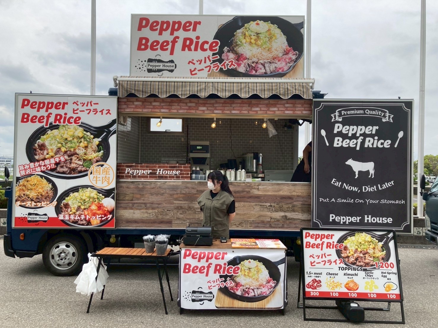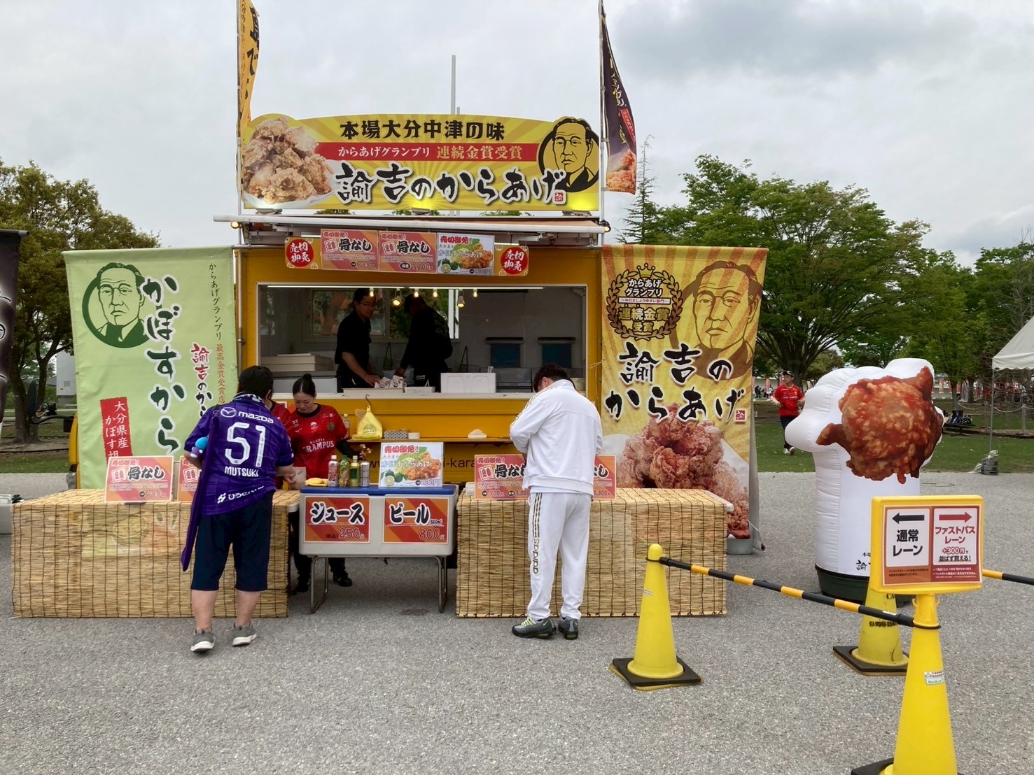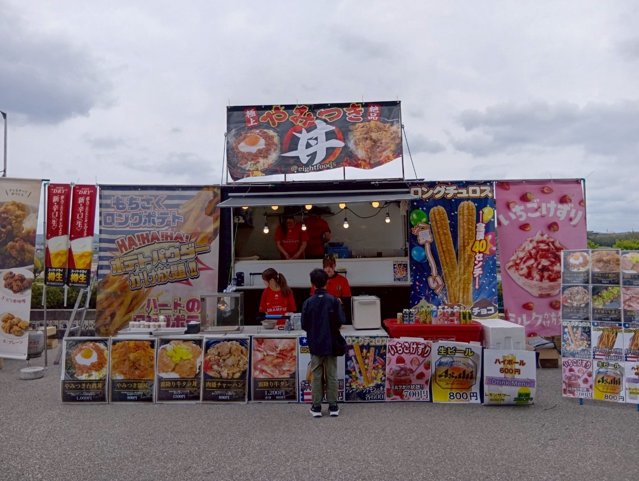 東海移動販売車組合のキッチンカーによるこの日のスタジアムグルメは「丼祭り」!牛タン丼、しらす丼、からあげ丼、ステーキ丼など、味自慢、ボリューム自慢の丼メニューが揃いました。