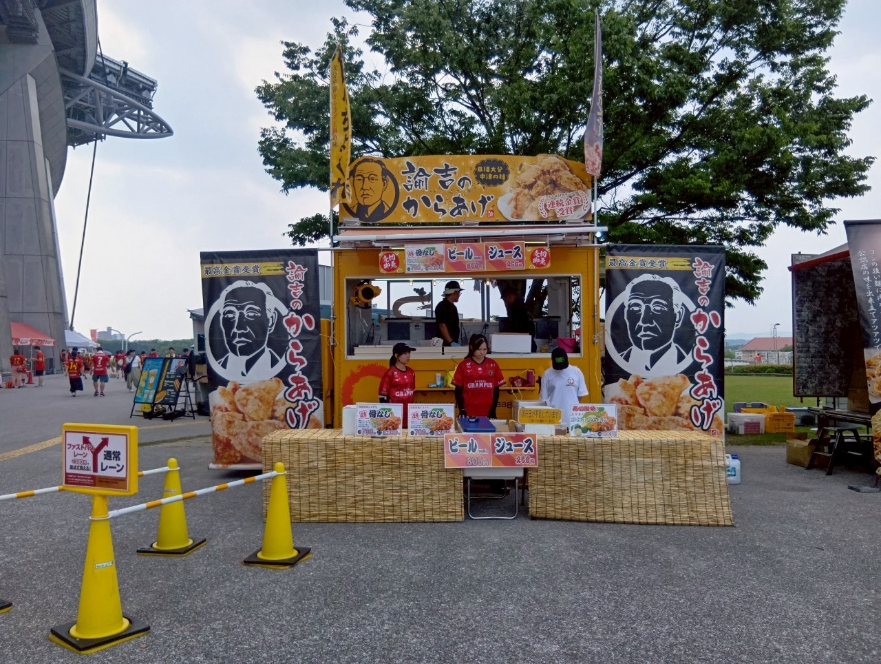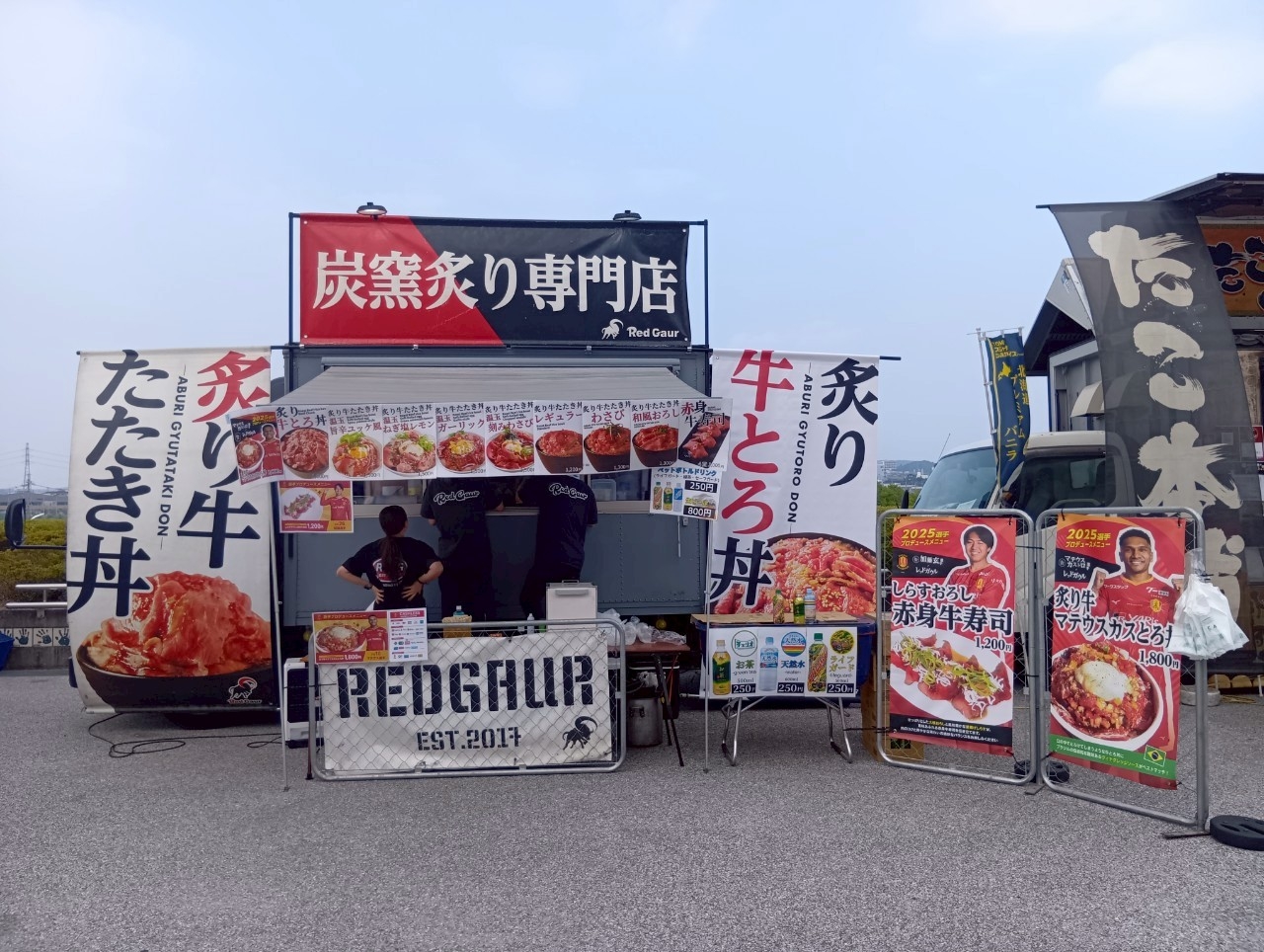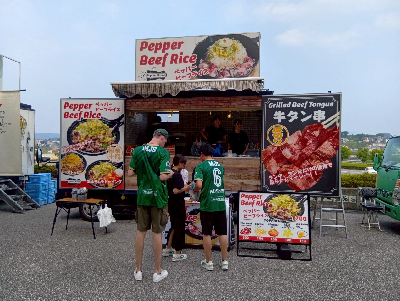 東海移動販売車組合のキッチンカーによるスタジアムグルメ、今回のテーマは「フェス飯」! お笑いと音楽で盛り上がるフェス空間に、スタジアムグルメの最強ラインナップが集結しました。