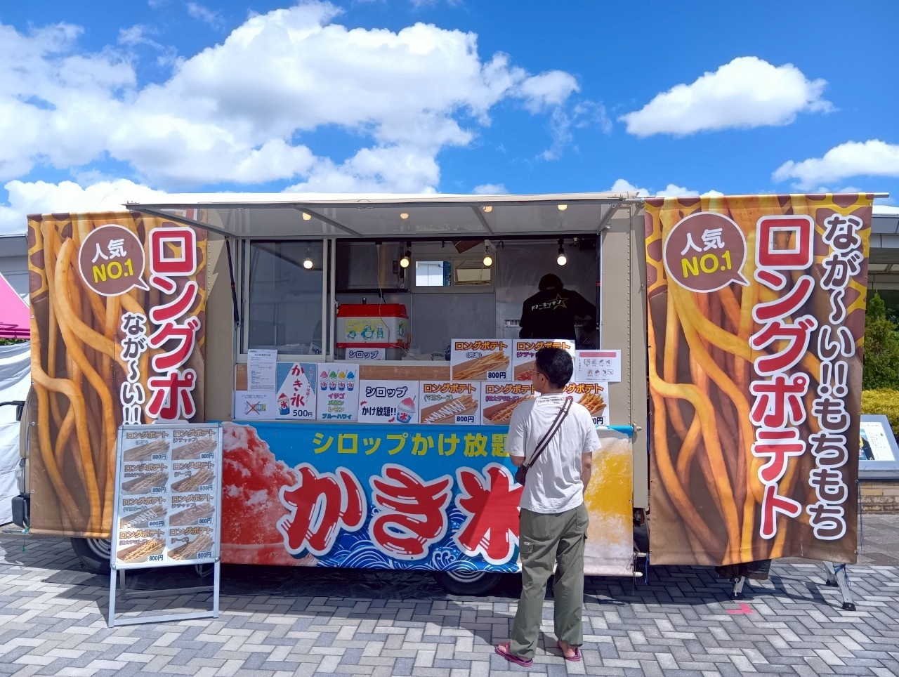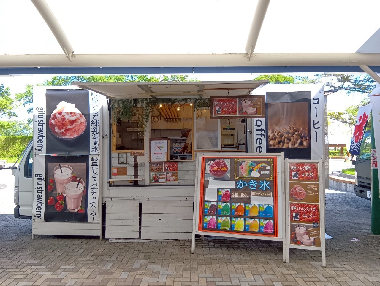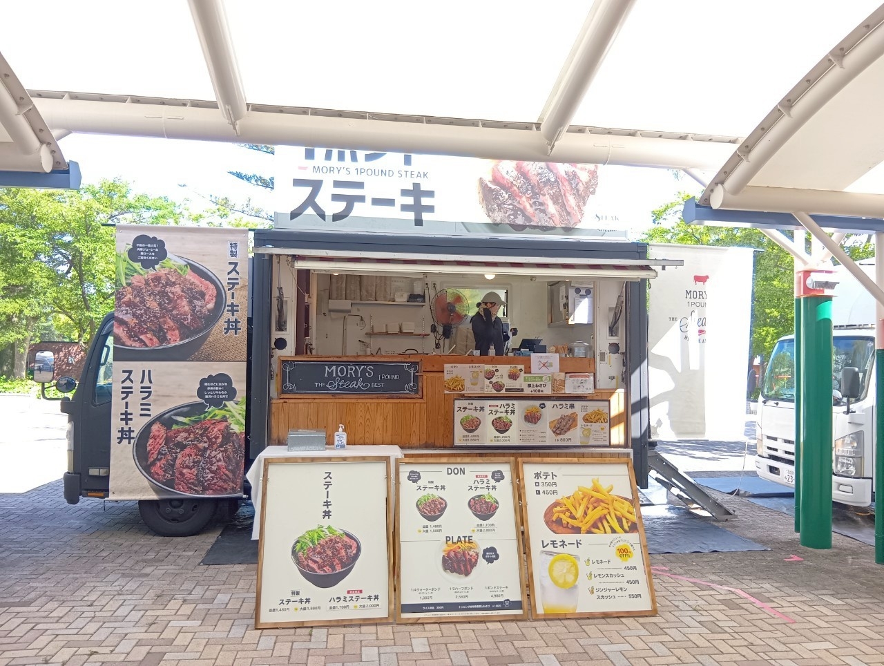 この土日も、ステーキ、焼きそば、フランク、たこ焼き、フライドポテト、スムージー、かき氷など、多彩なメニューをお届け。