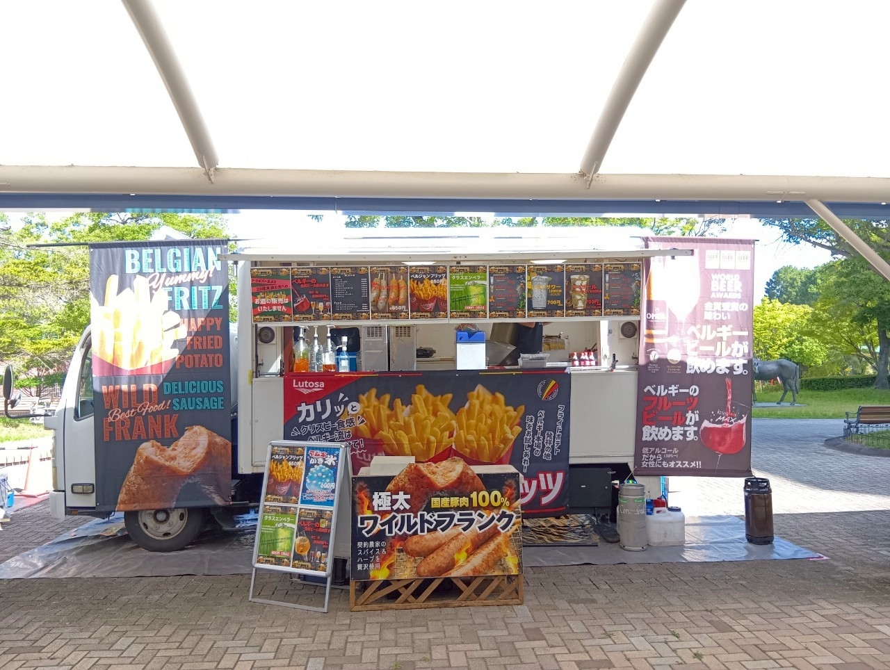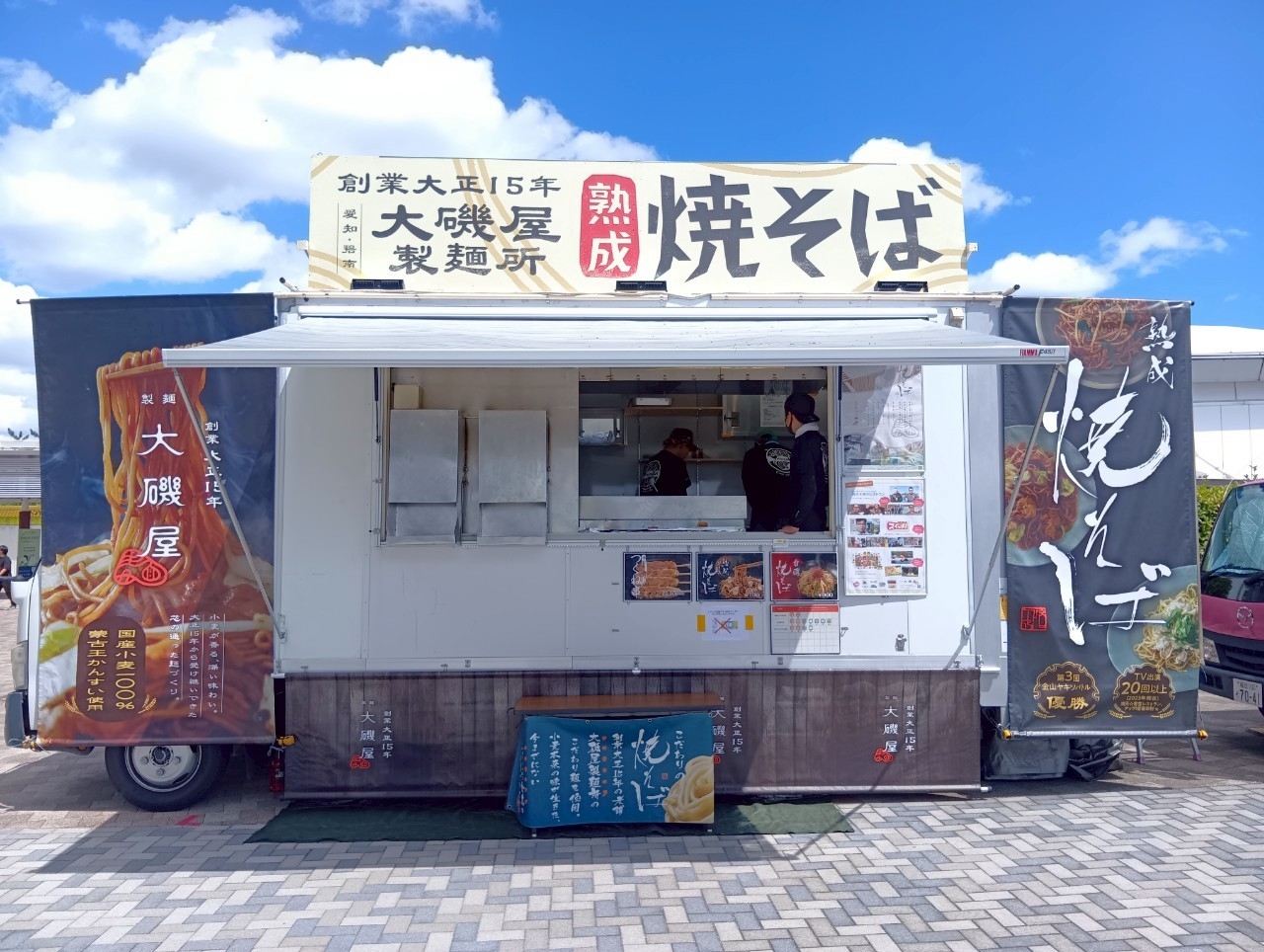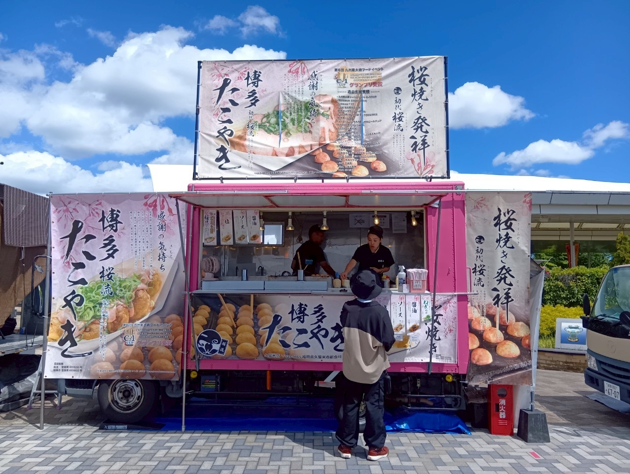 この土日も、ステーキ、焼きそば、フランク、たこ焼き、フライドポテト、スムージー、かき氷など、多彩なメニューをお届け。