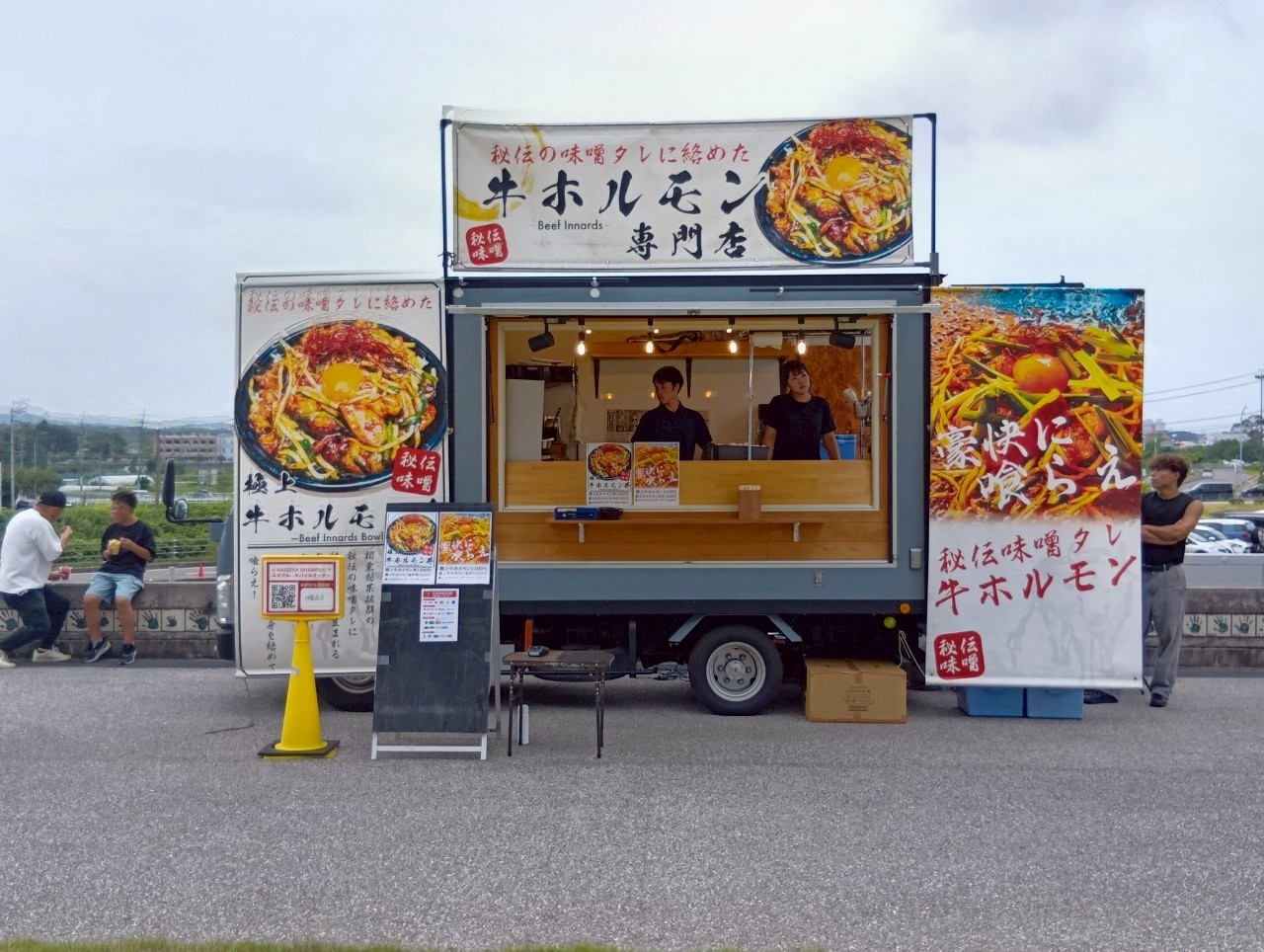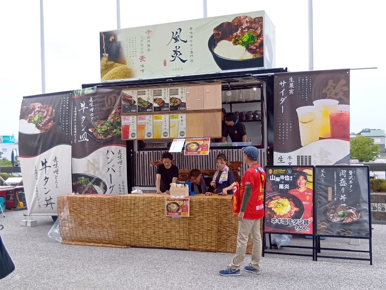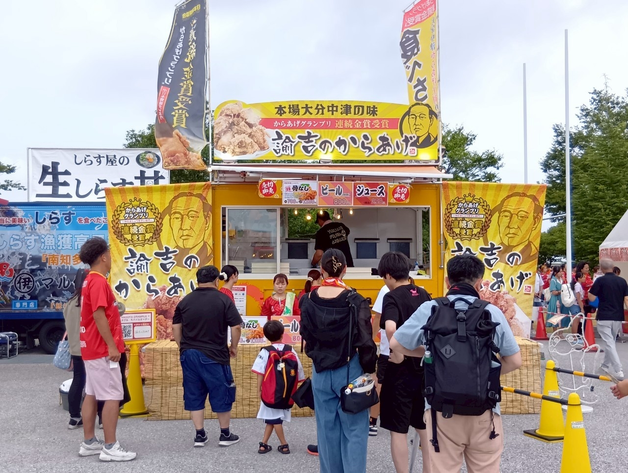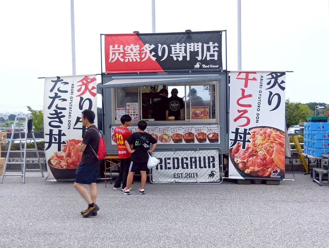 東海移動販売車組合のキッチンカーによるスタジアムグルメ、今回のテーマは「鯱の大祭典」1試合目を盛り上げるための「肉祭り」! スタミナたっぷり肉グルメで暑さも吹き飛ばします。