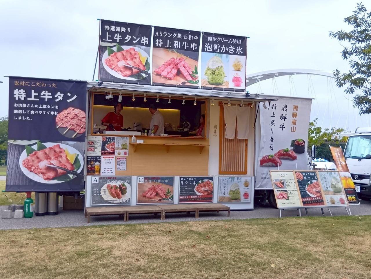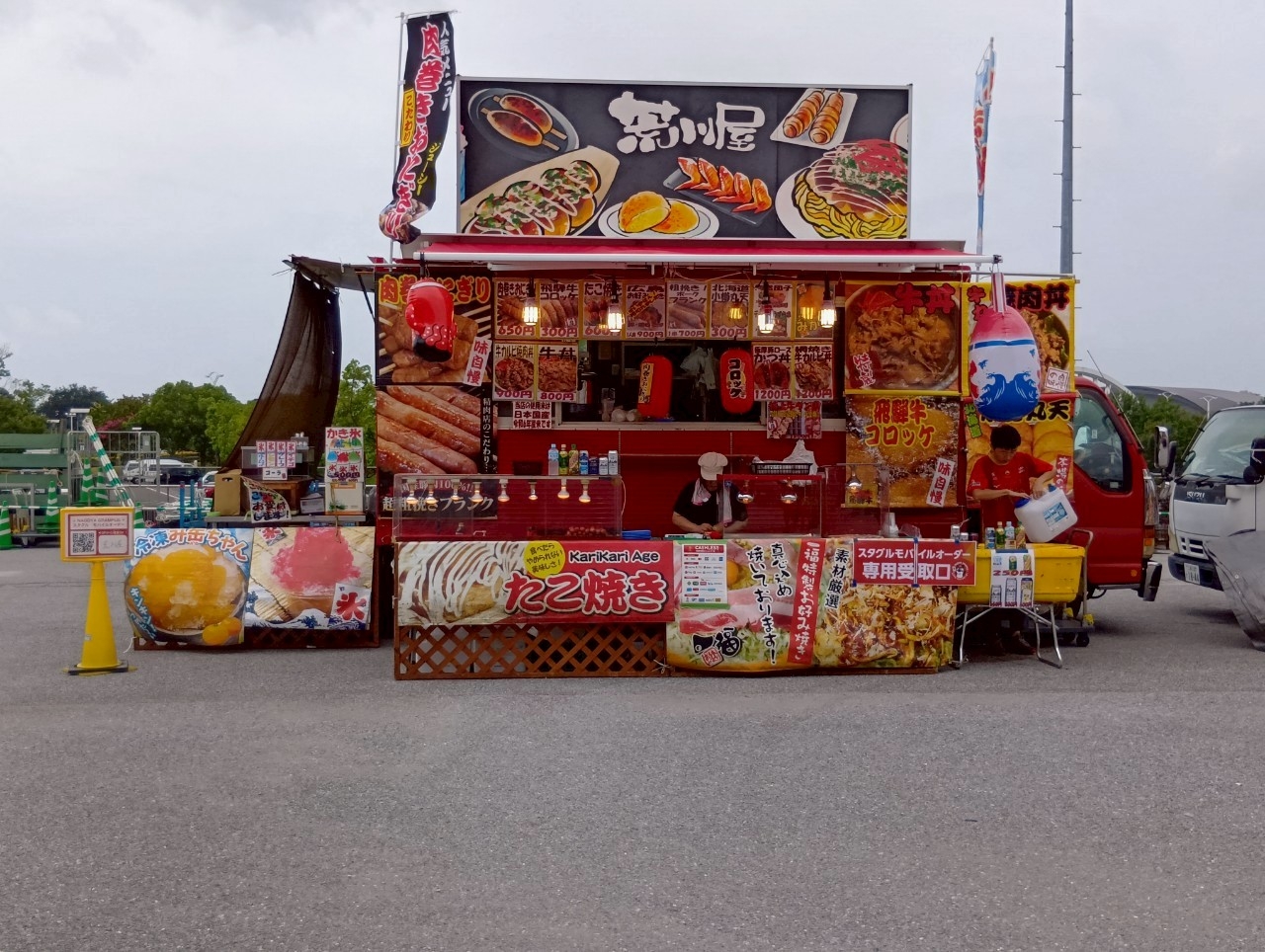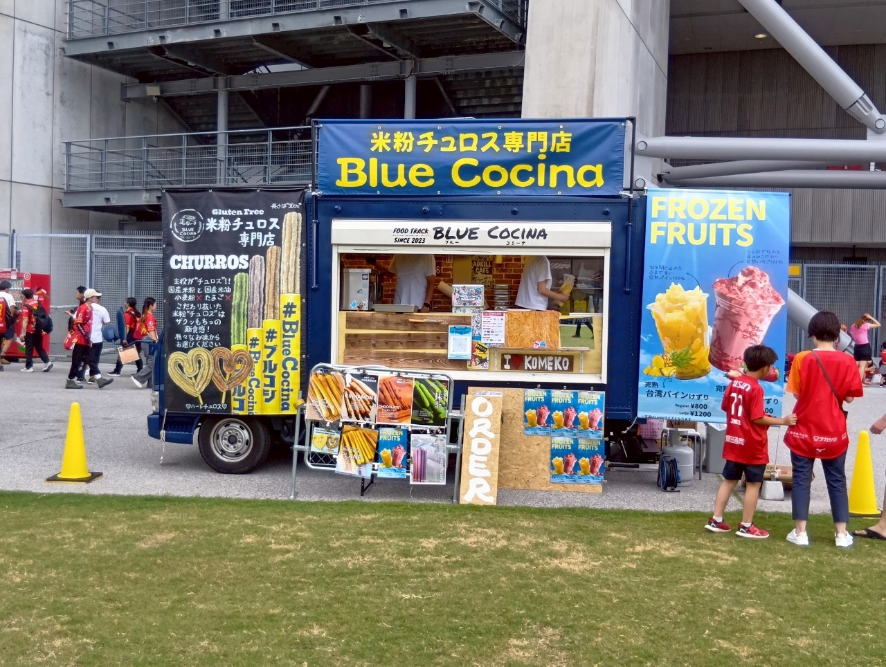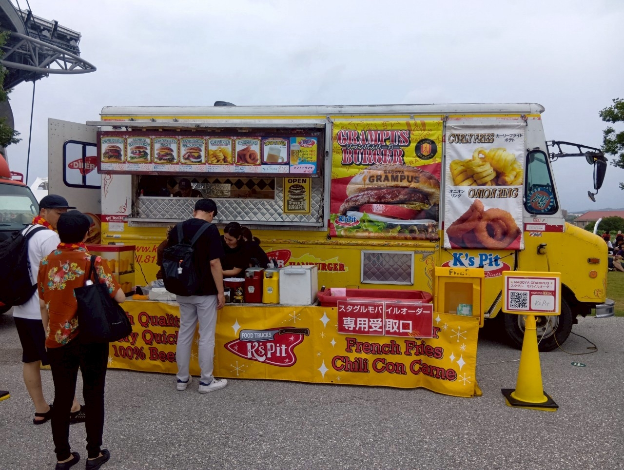 東海移動販売車組合のキッチンカーによるスタジアムグルメ、今回のテーマは「鯱の大祭典」1試合目を盛り上げるための「肉祭り」! スタミナたっぷり肉グルメで暑さも吹き飛ばします。
