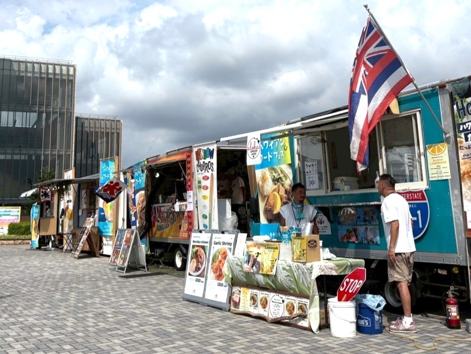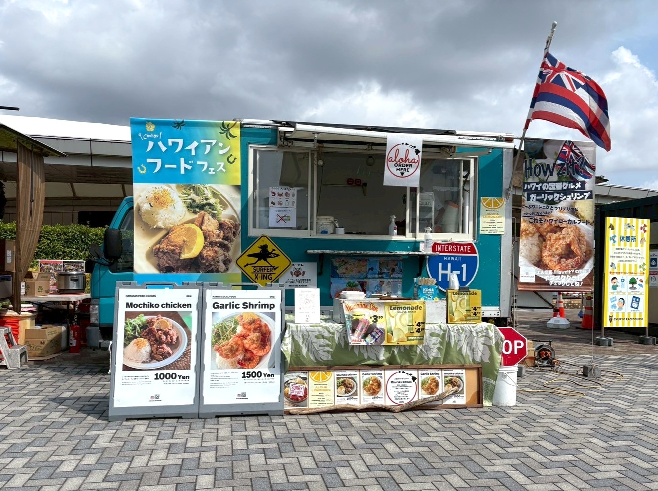 8月23日(土)24日(日)、そして次回8月30日(土)31日(日)は、「ハワイアンフードフェス」を開催!ガーリックシュリンプ、ロコモコ、マラサダ、シェイブアイスなど、南国気分を満喫できるグルメが勢揃い♪ もちろん、定番人気のキッチンカーも皆さまに自慢のグルメをお届けしました。