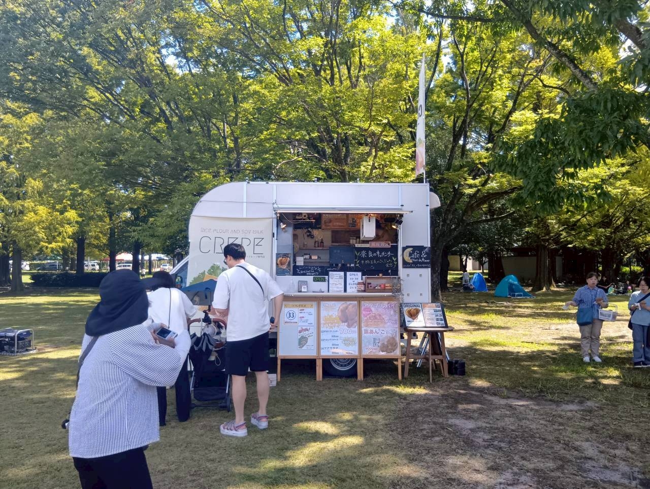 広い公園にキッチンカーが集合!多彩なテイクアウトグルメが一堂に会します。