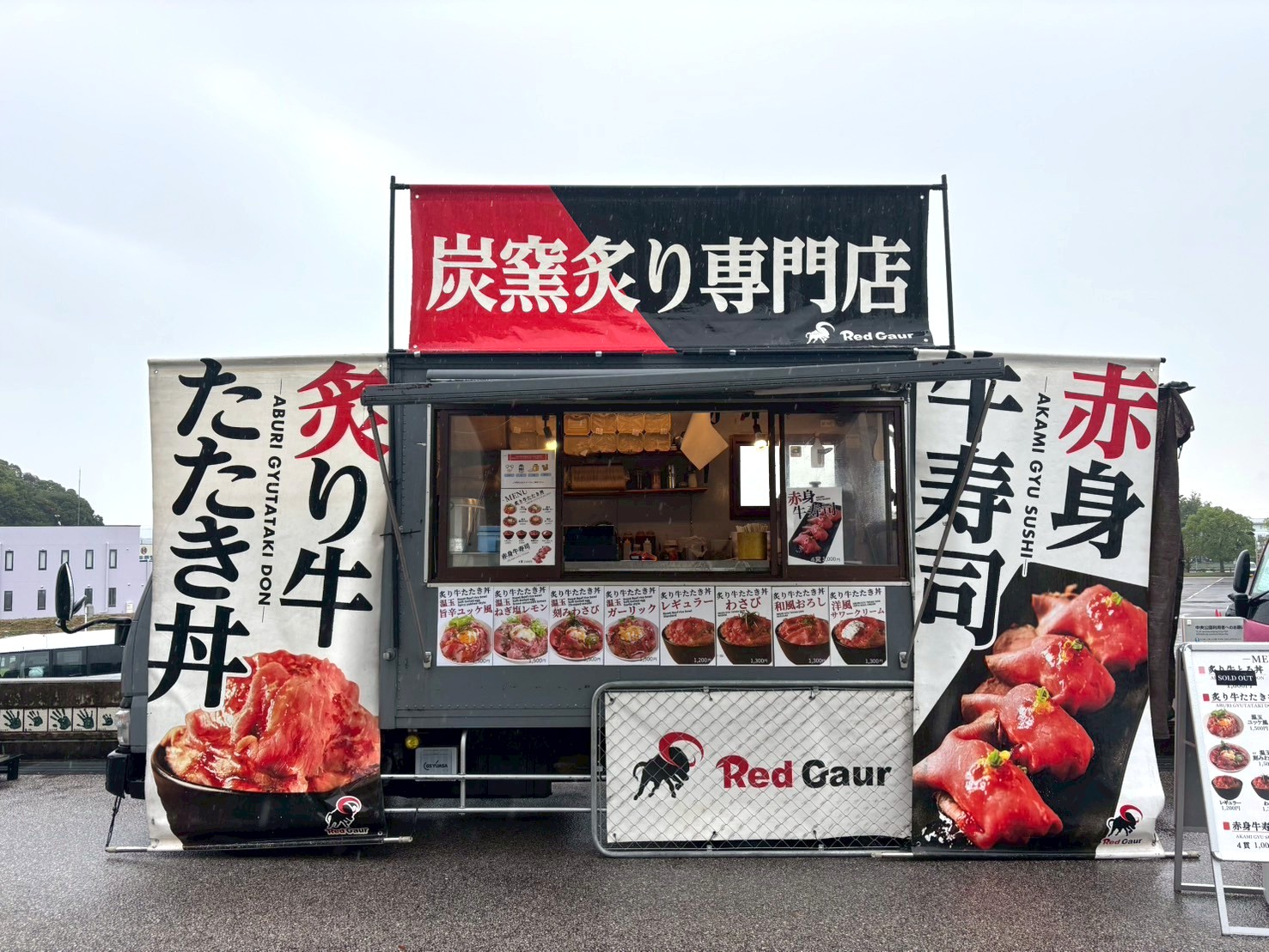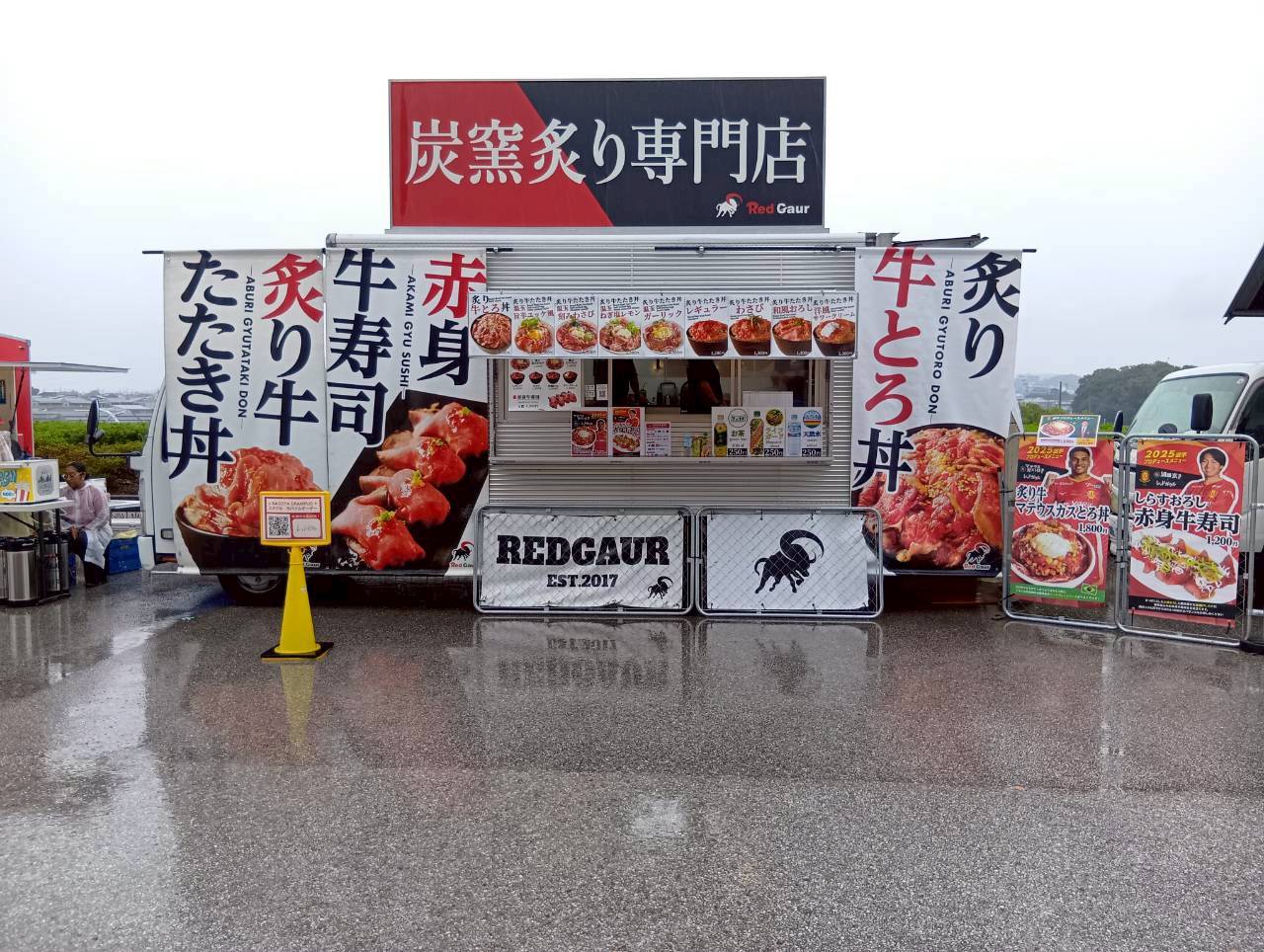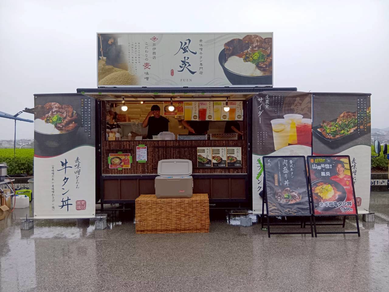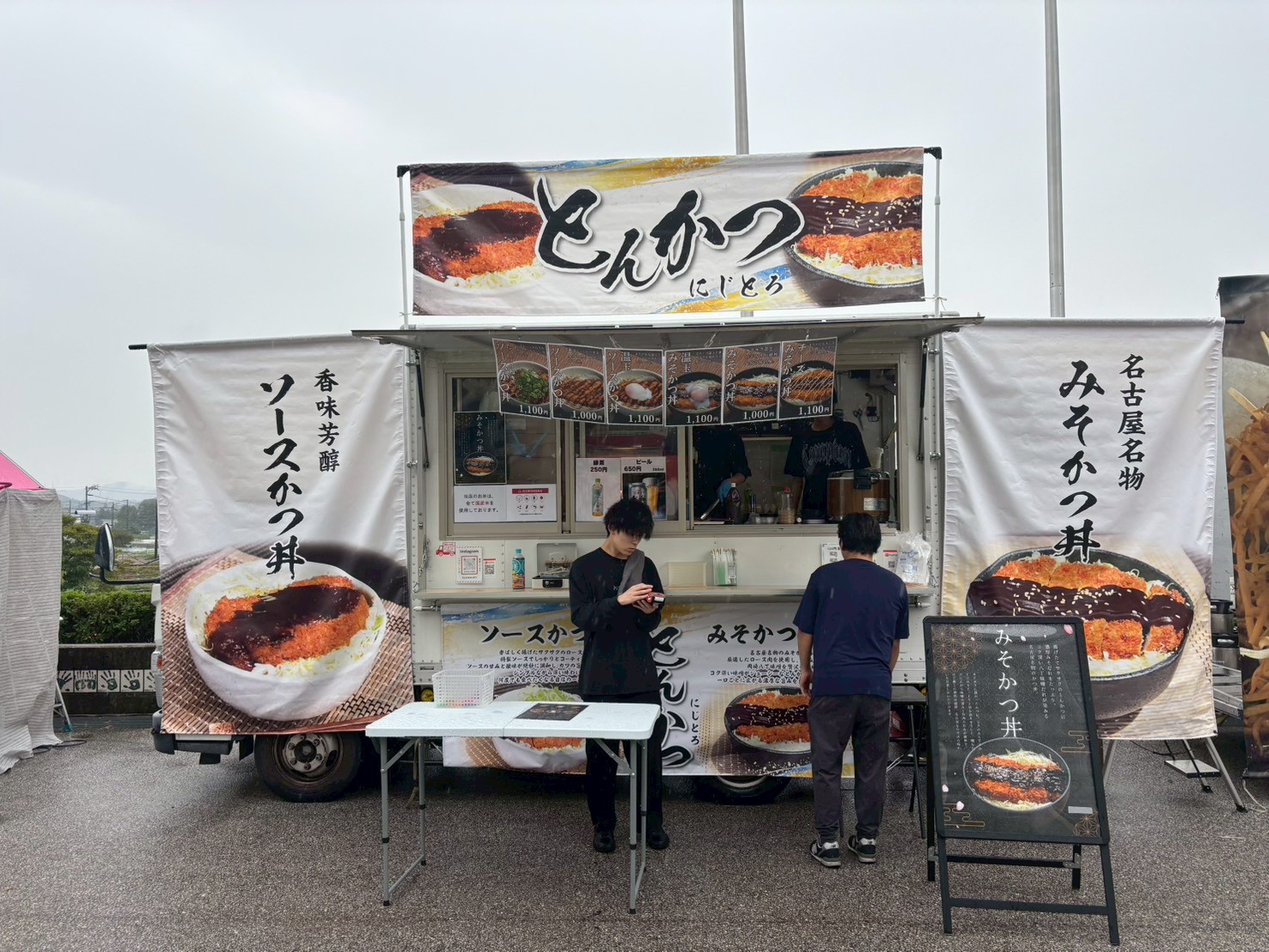 東海移動販売車組合のキッチンカーによるスタジアムグルメ、今回のテーマは「なごや飯」!台湾まぜそば・天むす・カレーうどん・みそかつ・あんバターなど名古屋名物グルメが勢揃い。