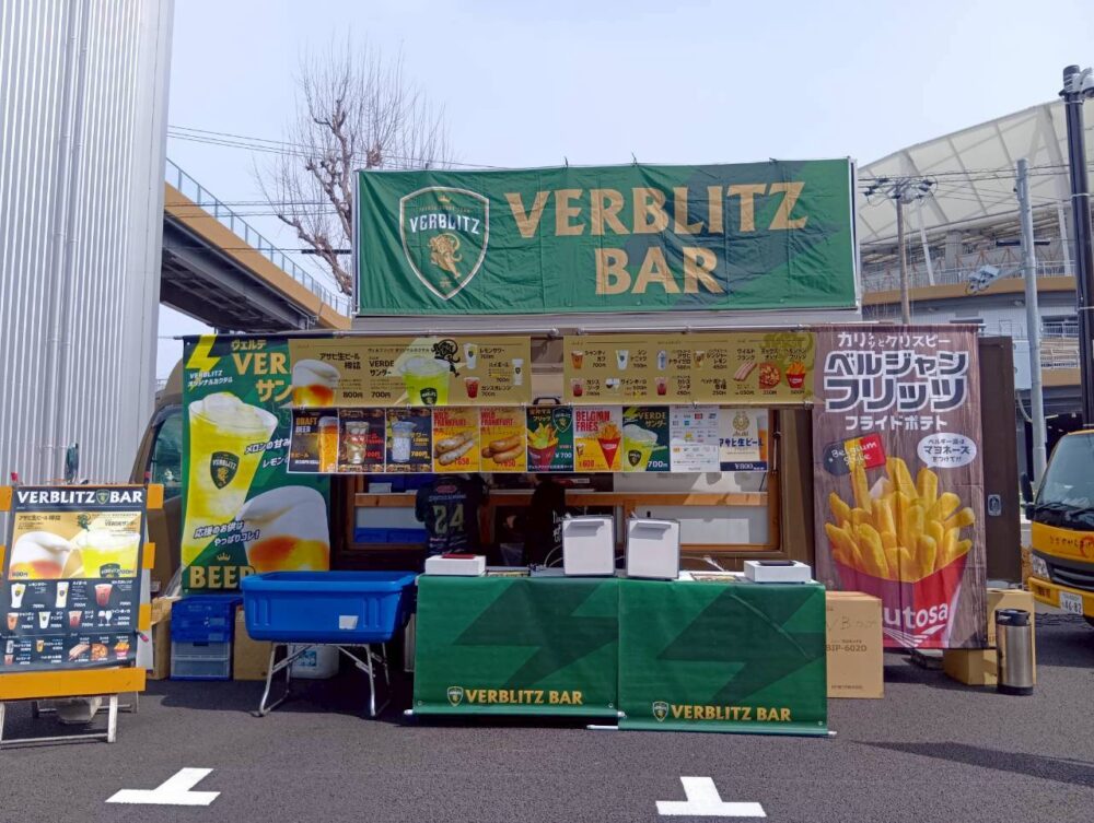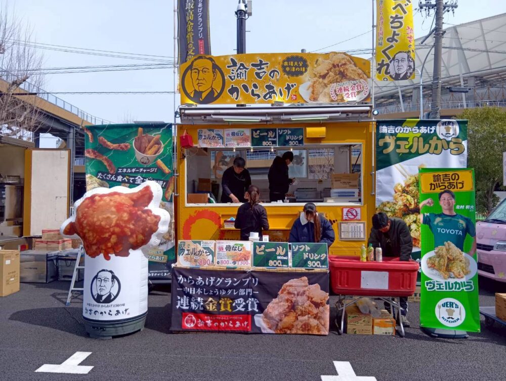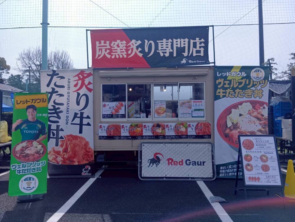 3月22日(日)、パロマ瑞穂ラグビー場にてトヨタヴェルブリッツ vs 静岡ブルーレヴズ の試合が行われました。こちらに、東海移動販売車組合からキッチンカーを派遣。来場者の皆さまに多彩なフードメニューをお楽しみいただきました。