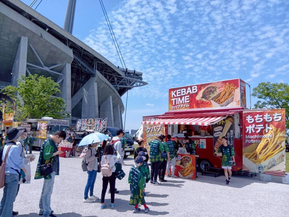 東海移動販売車組合では、スポーツイベントやスタジアムグルメ、地域イベントなど、さまざまなシーンに合わせたキッチンカーの手配・派遣を行っています。