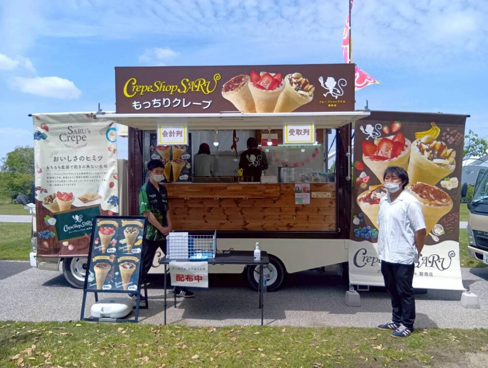 こちらに、東海移動販売車組合からキッチンカーを含めた56店舗を派遣しました。