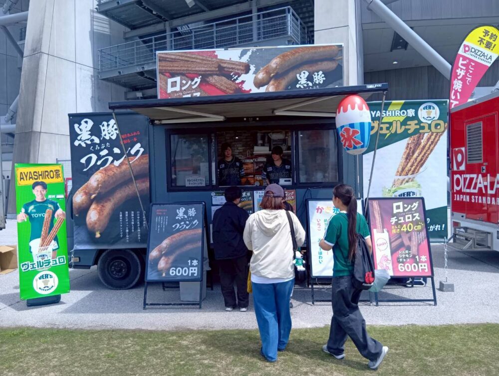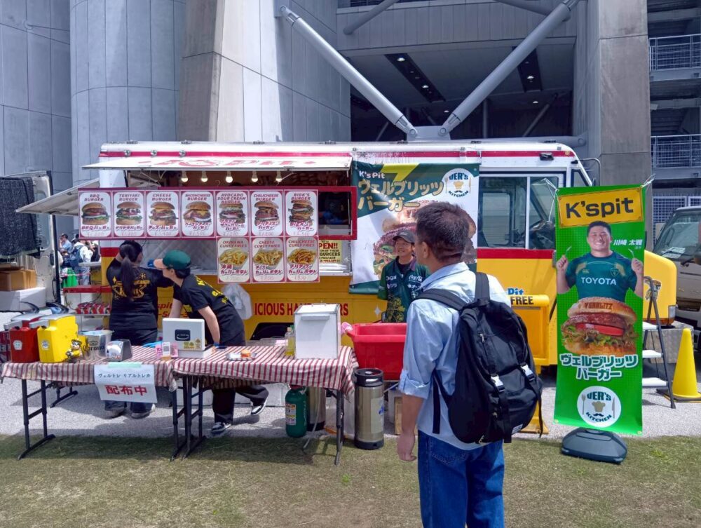 今回のスタジアムグルメ「VER’Sキッチン」のテーマは「肉祭り&ビアフェス」。キッチンカーならではのできたての料理と多彩なメニューは、スポーツ観戦イベントとの相性も抜群。グルメを楽しみながら試合観戦ができることも、スタジアムイベントの大きな魅力のひとつです。