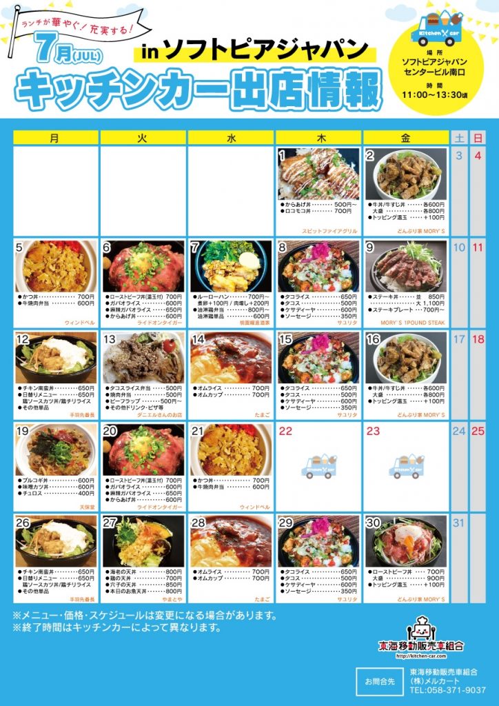 この3日間は、各日2台のキッチンカーが開催場所であるソフトピアジャパンに出店。私たち東海移動販売車組合もイベントを一緒に盛り上げます!