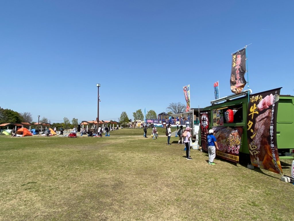 広い芝生やアスレチック体を動かす傍ら、たくさんのキッチンカーグルメも楽しめます!